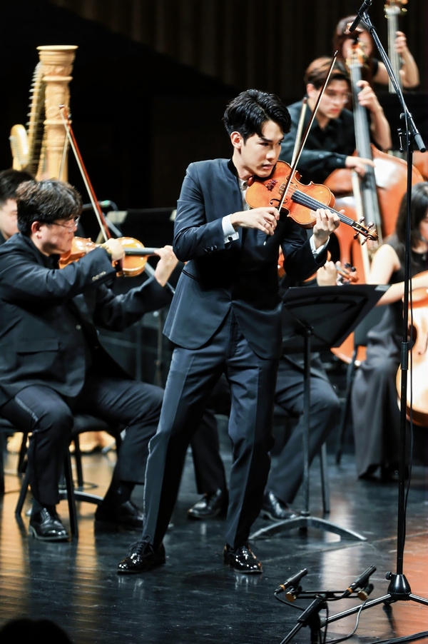 布魯赫《蘇格蘭幻想曲》(為小提琴與樂隊而作)帶領(lǐng)觀眾進入不同風格的音樂情感世界。這部作品巧妙地將多首優(yōu)美而哀婉的蘇格蘭民歌主題融入傳統(tǒng)的協(xié)奏曲框架。小提琴獨奏演奏家林品任以極具歌唱性的旋律線條貫穿全曲,在幻想曲式的自由結(jié)構(gòu)中展現(xiàn)出華麗技巧與情感表達的完美平衡。他以精湛的技巧和深情的音色,演繹出時而激昂豪邁時而如泣如訴的動聽旋律,博得現(xiàn)場觀眾熱烈喝彩。