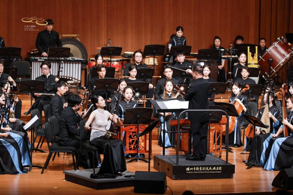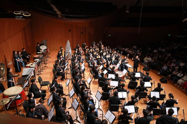 10月16日晚,江蘇大劇院內(nèi)絲竹和鳴,民族管弦樂《長江》主題音樂會(huì)圓滿落幕。本場音樂會(huì)由民族室內(nèi)樂團(tuán)藝術(shù)總監(jiān)王甫建執(zhí)棒領(lǐng)銜,浙音民族室內(nèi)樂團(tuán)、民族樂隊(duì)學(xué)院受邀參加,與揚(yáng)州市歌舞劇院民族樂團(tuán)攜手以精湛的技藝演繹多首樂曲,用國樂語言勾勒長江流域的文明脈絡(luò)與新時(shí)代氣象,贏得了全場的持久掌聲。