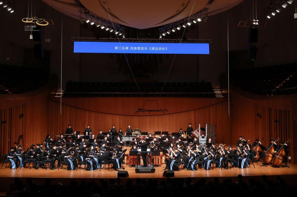 作為2025紫金文化藝術(shù)節(jié)新創(chuàng)大型音樂作品會(huì)演的重磅音樂會(huì),本場音樂會(huì)為觀眾呈現(xiàn)了一場氣勢(shì)恢宏的視聽盛宴。音樂會(huì)以音符繪制長江萬里圖,從描繪江水起源的《親親長江》《源遠(yuǎn)流長》,到展現(xiàn)峽灣險(xiǎn)峻的竹笛協(xié)奏《壯美三峽》;從表現(xiàn)奔騰氣勢(shì)的《驚濤駭浪》,到二胡與樂隊(duì)勾勒的《萬里春江》;再由琵琶協(xié)奏《江河相擁》訴說支流交匯的深情,終以《長江天際流》收束于浩蕩天際,以豐富的民族器樂語言,深情禮贊長江的磅礴生命力與深厚文化底蘊(yùn)。作為大型原創(chuàng)民族管弦樂,7首樂曲均由作曲與指揮系副主任王云飛教授作曲,圍繞 "長江主題、時(shí)代風(fēng)范、家鄉(xiāng)特色" 創(chuàng)作目標(biāo),構(gòu)建起一幅融匯 "綠色之樂、創(chuàng)新之樂、開放之樂、幸福之樂" 的音樂長卷。