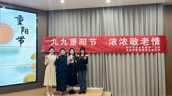 當(dāng)天上午,上城區(qū)采荷文化園內(nèi)暖意涌動(dòng)。聲樂(lè)歌劇系研究生黨支部與浙江大學(xué)醫(yī)學(xué)院附屬邵逸夫醫(yī)院外一支部攜手開(kāi)展“九九重陽(yáng)節(jié)·濃濃敬老情”活動(dòng)——醫(yī)護(hù)人員為居民提供健康義診與科普服務(wù);聲樂(lè)歌劇系學(xué)生陳貝洱、鄭靜怡蕊、王詩(shī)涵、曾榆粞帶來(lái)《好運(yùn)來(lái)》《絨花》等6首經(jīng)典歌曲,用歌聲搭建起情感的橋梁?,F(xiàn)場(chǎng)掌聲陣陣,觀眾跟唱互動(dòng),溫情彌漫。一曲歌、一份診,皆是心意——聲歌學(xué)子用真情旋律與貼心守護(hù),讓老人們?cè)谥仃?yáng)節(jié)感受到來(lái)自藝術(shù)與健康的雙重溫暖。