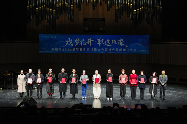 社會導(dǎo)師的聘任是學(xué)工部與戲劇系協(xié)同深化“課堂與舞臺”“學(xué)理與實踐”融合的關(guān)鍵舉措。戲劇傳承創(chuàng)新既需學(xué)院內(nèi)的系統(tǒng)訓(xùn)練,更離不開行業(yè)一線鮮活經(jīng)驗的持續(xù)滋養(yǎng)。一份份聘書連接起學(xué)術(shù)傳承與市場前沿,一枚枚校徽承載著文化使命與身份認(rèn)同,象征著學(xué)術(shù)與行業(yè)深度融合,也寓意著這些導(dǎo)師正式融入學(xué)院育人共同體。導(dǎo)師們將帶來當(dāng)前戲劇創(chuàng)作、制作與市場前沿的審美判斷與實踐智慧,引導(dǎo)師生在堅守藝術(shù)本體的同時敏銳把握行業(yè)脈搏,使教學(xué)更扎實地扎根于戲劇生存與發(fā)展的真實土壤,共同培育既有扎實功底、又具開闊視野與強大適應(yīng)力的未來戲劇人。