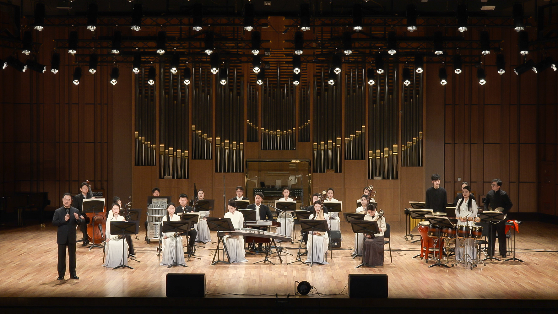 絲竹盈耳韻悠揚(yáng),四海樂聲聚錢塘。1月9日晚,浙音民族室內(nèi)樂團(tuán)樂季音樂會(huì)《東西南北風(fēng)之二》在標(biāo)準(zhǔn)音樂廳圓滿落幕。本場音樂會(huì)作為樂團(tuán)2025—2026樂季的最后一場音樂會(huì),以“縱歌華夏萬里,龍吟江海山川”為主題,通過多首兼具地域特色與時(shí)代氣息的民族器樂作品,帶領(lǐng)現(xiàn)場觀眾開啟了一場跨越山河的音樂之旅,感受中華優(yōu)秀傳統(tǒng)文化的博大精深與民族音樂守正創(chuàng)新的蓬勃生機(jī)。