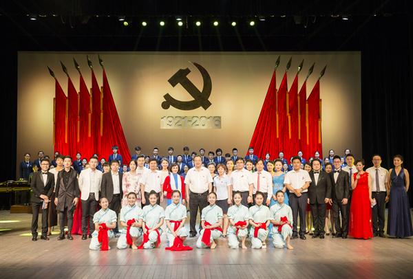 演出在音樂(lè)學(xué)系直屬黨支部書記莫成練指揮全場(chǎng)齊唱《沒(méi)有共產(chǎn)黨就沒(méi)有新中國(guó)》中落下帷幕。