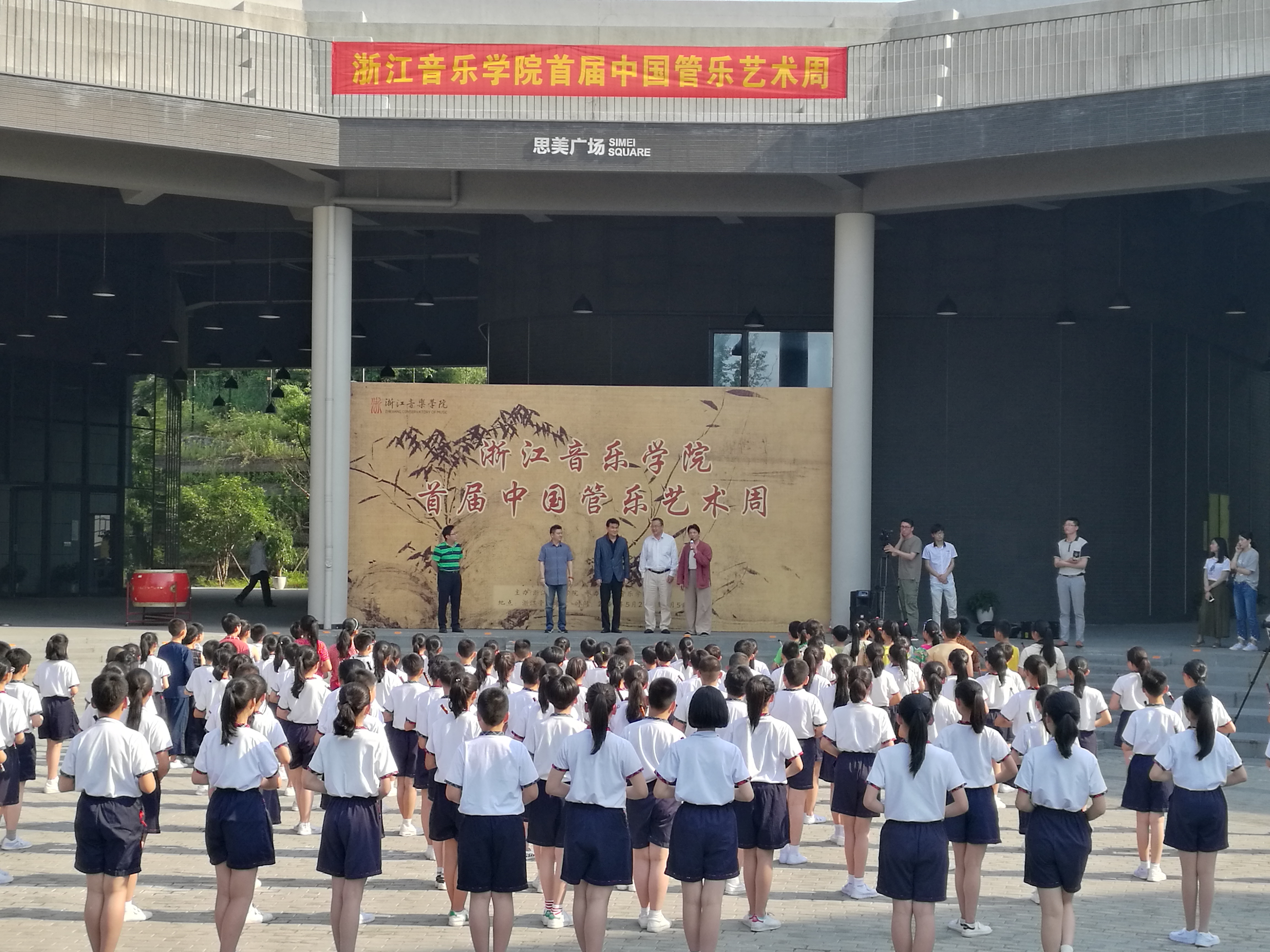 開幕式上,學(xué)院黨委書記褚子育、中國音樂家協(xié)會竹笛學(xué)會長林文增、中央音樂學(xué)院民樂系副主任戴亞、國樂系相關(guān)領(lǐng)導(dǎo)等應(yīng)邀出席。由百余名采荷一小的笛子百人樂團(tuán)帶來的精彩演出拉開了藝術(shù)周的序幕。當(dāng)晚的開幕音樂會由中央音樂學(xué)院“龍之吟”笛塤樂團(tuán)精彩演譯了“管韻”專場音樂會。