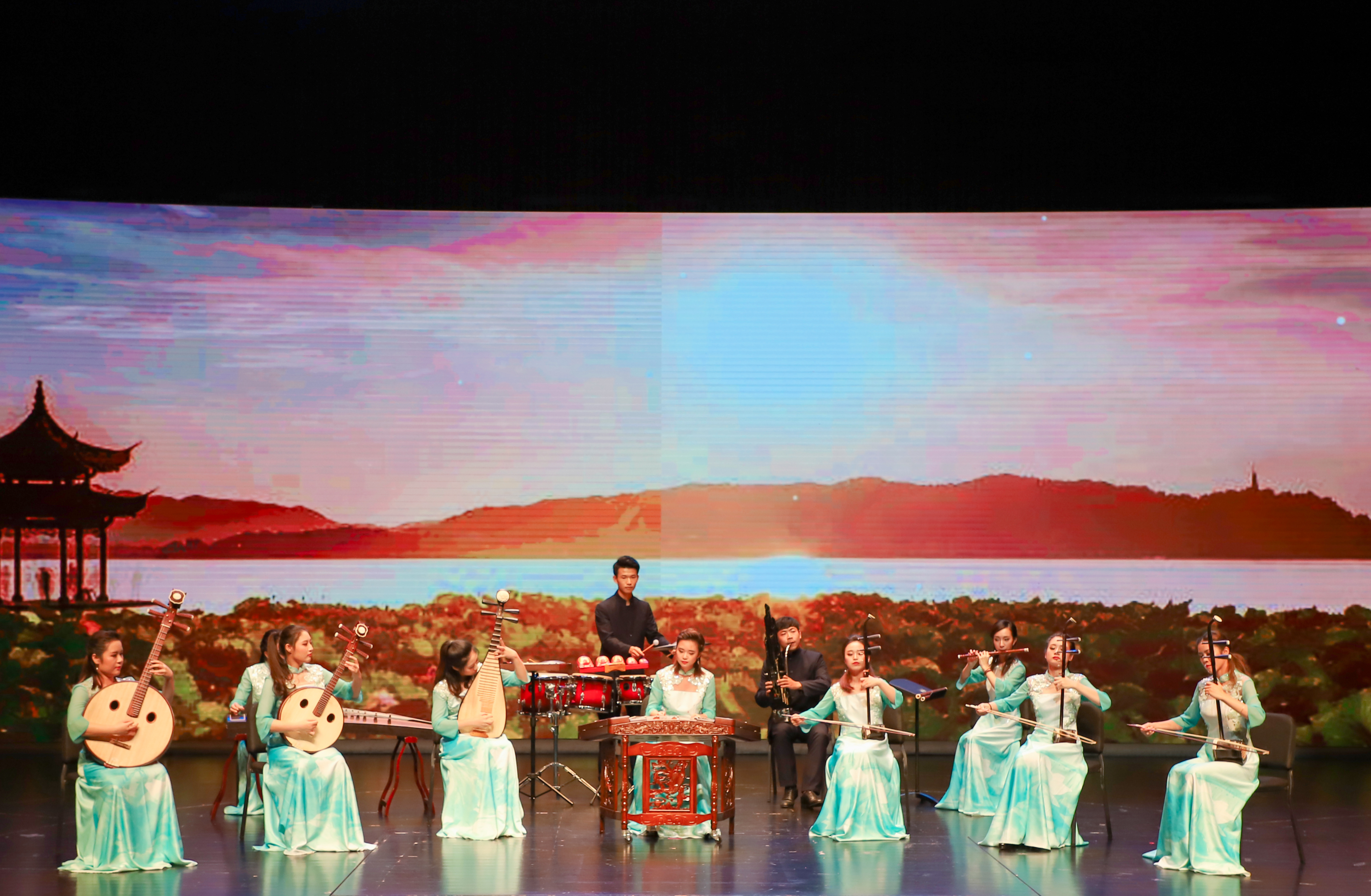 音樂會由序——誰家新燕啄春泥、第一篇章——此曲只應天上有、第二篇章——誰家玉笛暗飛聲、第三篇章——聽奏繁弦玉殿清、第四篇章——塞上梅花羌笛吹、尾聲——一半勾留是此湖組成。來自中央音樂學院、中國音樂學院、上海音樂學院、天津音樂學院、武漢音樂學院、浙江音樂學院、中國戲曲學院、吉林藝術(shù)學院、浙江藝術(shù)職業(yè)學院、杭州藝術(shù)學校等10所學校的近90名優(yōu)秀學生用二胡、古箏、嗩吶、竹笛、琵琶、柳琴等民族樂器,生動形象地呈現(xiàn)出高山流水、琴瑟和鳴的和諧畫面。古樸的舞臺、柔美的燈光,整場音樂會在傳承傳統(tǒng)經(jīng)典,展現(xiàn)民族特色中,為觀眾帶來無限的遐想和期待。