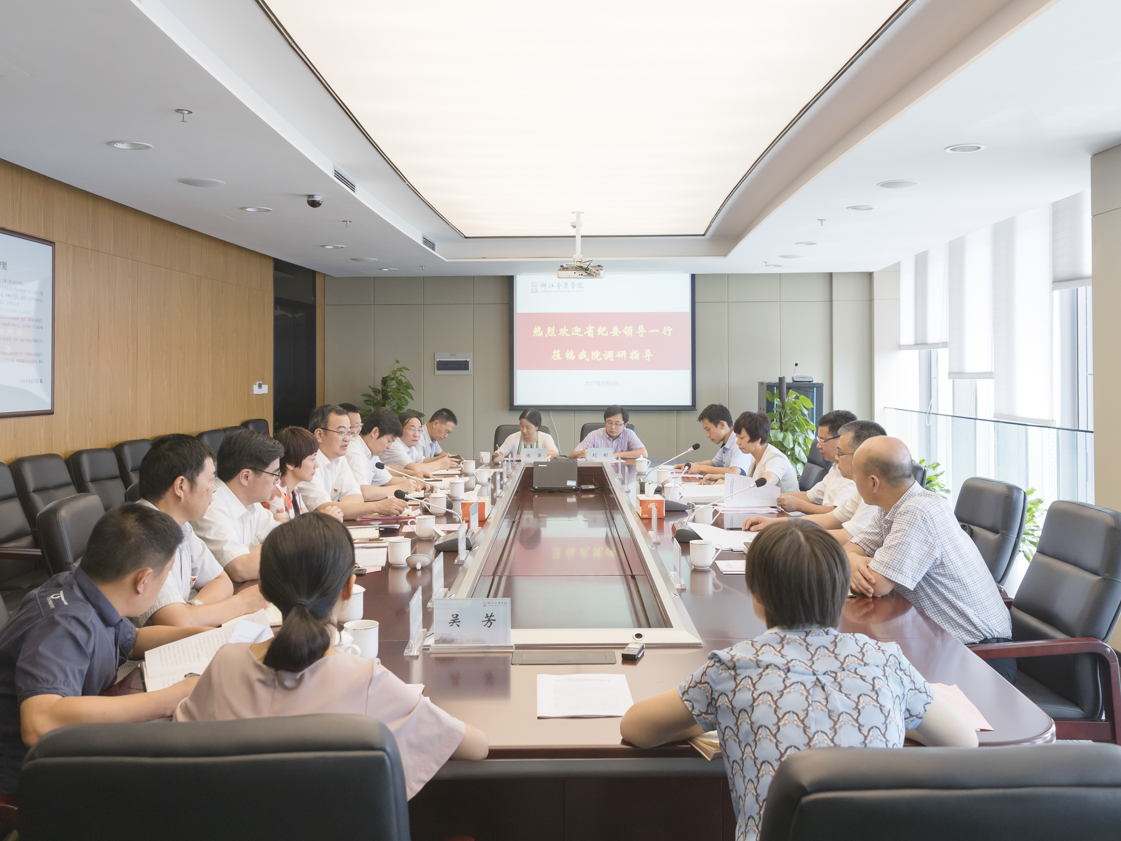 9月6日,省紀(jì)委副書記、省監(jiān)委副主任暨軍民,省紀(jì)委常委、省監(jiān)委委員葉懷貫,省紀(jì)委、省監(jiān)委駐教育廳紀(jì)檢監(jiān)察組組長郭麗華,省紀(jì)委、省監(jiān)委第三紀(jì)檢監(jiān)察室主任祝昌聯(lián)等一行5人來學(xué)院,就貫徹全省十四次黨代會精神,打造“清廉浙江”建設(shè)開展調(diào)研、座談。學(xué)院黨政班子成員、紀(jì)委班子成員、相關(guān)部門負(fù)責(zé)人、二級黨組織負(fù)責(zé)人代表等參加座談。