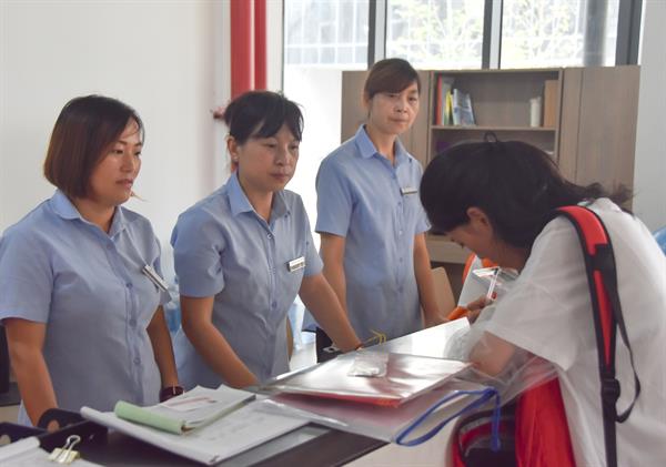 一大早,學院領導褚子育、張建國、賈秀英、張鴻雁,以及相關部門負責人就來到報到現(xiàn)場,看望新生及家長,并慰問工作在迎新一線的工作人員。每到一處,學院領導都詳細詢問迎新工作進展情況,叮囑工作人員全力以赴,為新生及家長們提供全方位、高效率的服務。在新生“綠色通道”辦理點,學院領導仔細詢問今年相關手續(xù)辦理情況,囑咐現(xiàn)場工作人員及時解決新生們提出的入學困難。