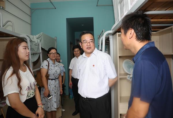 隨后,學院黨委書記褚子育一行走進宿舍看望新生,與新生們親切交談,詳細詢問他們“來自哪里”、“剛到學院是否適應”,并耐心解答了他們提出的問題。學院的關心讓新生們及家長們深深地感受到浙音大家庭的溫暖。在看望來自新疆、內蒙古的少數(shù)民族新生時,褚子育表示,不論大家來自祖國的何處,來到浙音,就是浙音大家庭的一份子,希望入校后盡快適應大學生活,在未來藝術的道路上越走越遠。