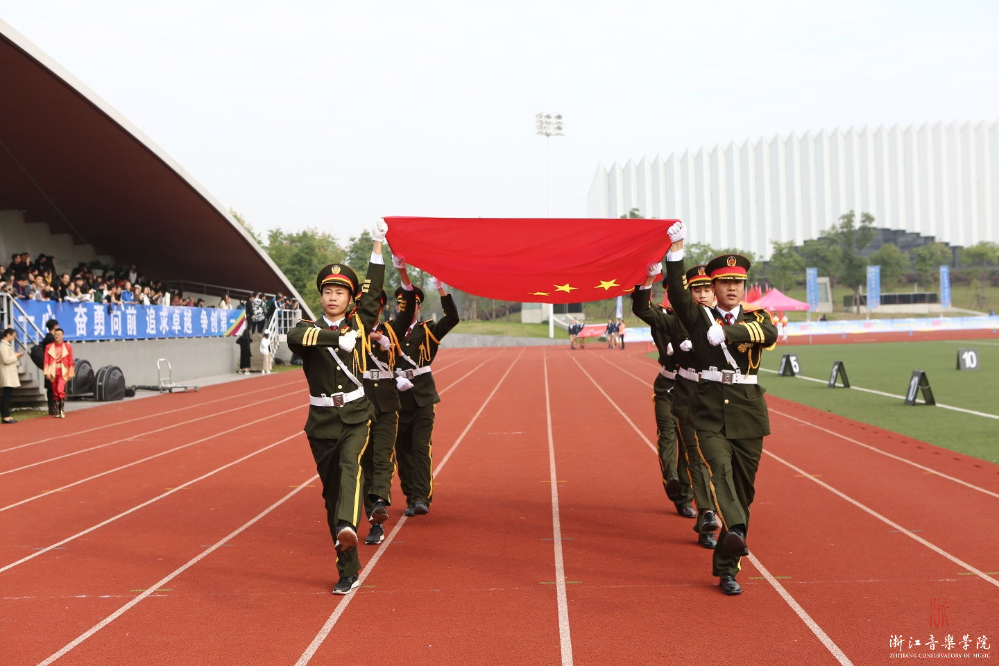 莊嚴(yán)的升旗儀式后,學(xué)院黨委副書記、副院長張建國致開幕詞。他表示,音樂與體育是人類共同的語言,音樂可以陶冶情操,體育可以強(qiáng)健體魄。處在中國特色社會主義新時代,浙音學(xué)子不僅要在舞臺上奏響動人的樂章,跳出妙曼的舞姿,同樣也要在運動場上展現(xiàn)矯健的身姿,跑得更快、跳得更高、投得更遠(yuǎn)。田徑運動會是學(xué)院每年一屆的重大體育盛事,今年的田徑運動會與去年相比,陣容更大、賽程更長、技術(shù)更新。運動使人快樂,競技催人向上,希望運動員能賽出水平、賽出成績、賽出風(fēng)格,在賽場上盡情展示浙音人的風(fēng)采。