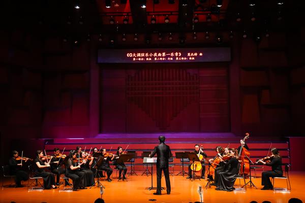 音樂會(huì)由我院作曲與指揮系副教授高健任指揮,管弦系教師李佳胤、單小明、楊光、吉祥擔(dān)任獨(dú)奏,音樂教育系教師盧思嘉獨(dú)唱,攜手演繹了莫扎特的傳世名作:膾炙人心的《G大調(diào)弦樂小夜曲》、廣為演奏的《降E大調(diào)交響協(xié)奏曲》,和早期最知名的聲樂作品《喜悅歡騰》。當(dāng)晚700座的編鐘音樂廳座無虛席,熱情洋溢的聽眾被樂團(tuán)默契的配合,花腔女高音精湛的歌唱技藝所鼓舞,曲目奏畢,仍意猶未盡,報(bào)以經(jīng)久不息的掌聲。音樂會(huì)還通過網(wǎng)絡(luò)直播使場外6989名聽眾廣泛關(guān)注。