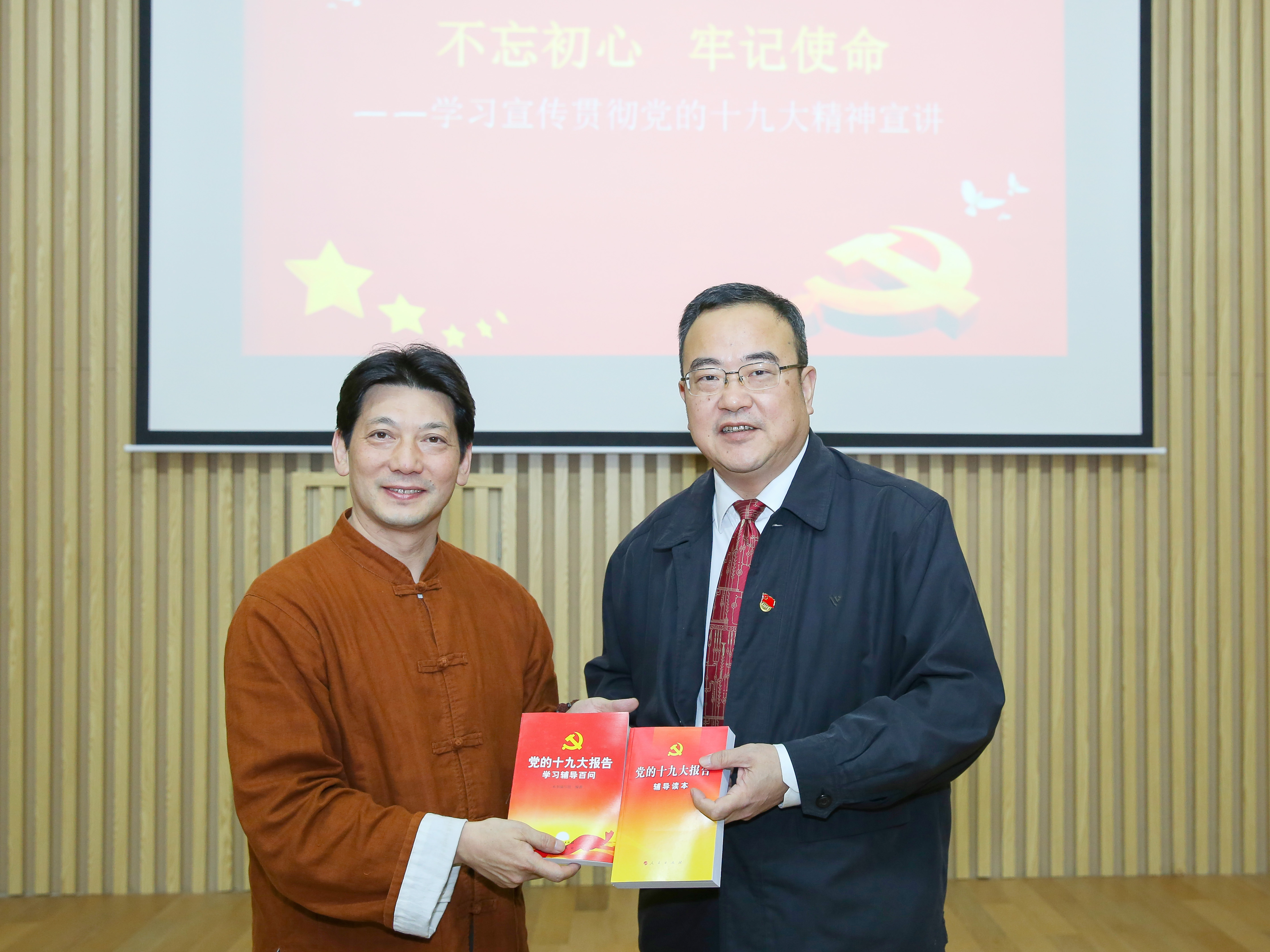 報(bào)告會(huì)現(xiàn)場(chǎng),學(xué)院領(lǐng)導(dǎo)向教師代表贈(zèng)送了《黨的十九大報(bào)告輔導(dǎo)讀本》《黨的十九大精神輔導(dǎo)百問(wèn)》和新《黨章》。