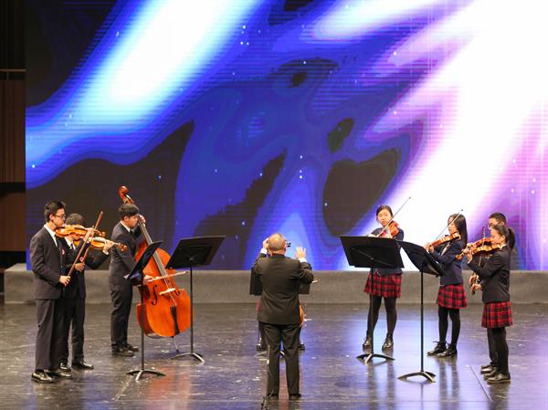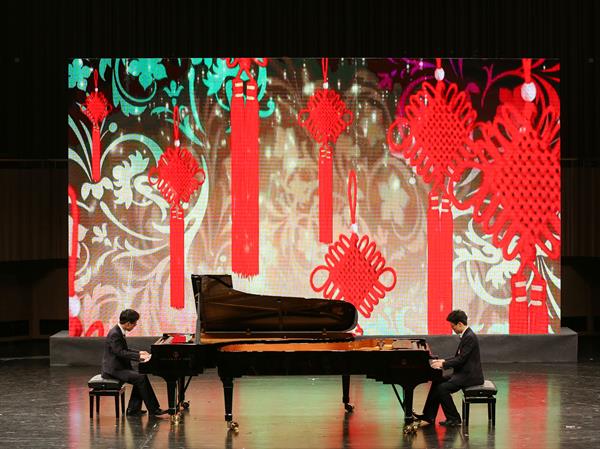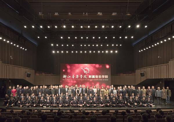 揭牌儀式以慶祝音樂(lè)會(huì)的形式貫穿始終,充分展現(xiàn)了學(xué)院附中的辦學(xué)特色。整場(chǎng)慶祝音樂(lè)會(huì)分為“笑臉”、“思考”、“展望”三大篇章,每一篇章都以精心制作的主題VCR開(kāi)篇,全面回顧了附中的籌建歷程,全方位闡述了附中的辦學(xué)初衷、辦學(xué)理念、辦學(xué)目標(biāo)和辦學(xué)特色,并帶來(lái)了各大音樂(lè)院校附中校長(zhǎng)們對(duì)浙音附中的美好祝愿。慶祝音樂(lè)會(huì)在民樂(lè)合奏《喜洋洋》中拉開(kāi)序幕,歡快的節(jié)奏和師生們精彩的演繹瞬間點(diǎn)燃了音樂(lè)廳的氣氛。古琴獨(dú)奏《流水》、琵琶獨(dú)奏《龍船調(diào)》、鋼琴獨(dú)奏《晨歌》、《貝多芬鋼琴三重奏》、弦樂(lè)重奏《莫扎特嬉游曲》、雙鋼琴?gòu)椬唷渡崭琛泛汀稓g樂(lè)中國(guó)節(jié)》,由附中師生精心準(zhǔn)備的精彩節(jié)目依次呈現(xiàn)在來(lái)賓面前,充分展示了師生的教學(xué)成果和藝術(shù)風(fēng)采,也博得了全場(chǎng)觀眾的陣陣掌聲?,F(xiàn)場(chǎng),還特邀流行音樂(lè)系學(xué)生葉炫清帶來(lái)女聲獨(dú)唱《致青春》,動(dòng)情的演唱感染了在場(chǎng)每位觀眾。在揭牌儀式環(huán)節(jié),到場(chǎng)領(lǐng)導(dǎo)一同敲擊馬林巴,以一種特殊的方式,與全場(chǎng)觀眾一起共同見(jiàn)證學(xué)院附屬音樂(lè)學(xué)校的正式成立。最后,在《共圓中國(guó)夢(mèng)》和《我愛(ài)你中國(guó)》的歌聲中,慶祝音樂(lè)會(huì)圓美落下帷幕。