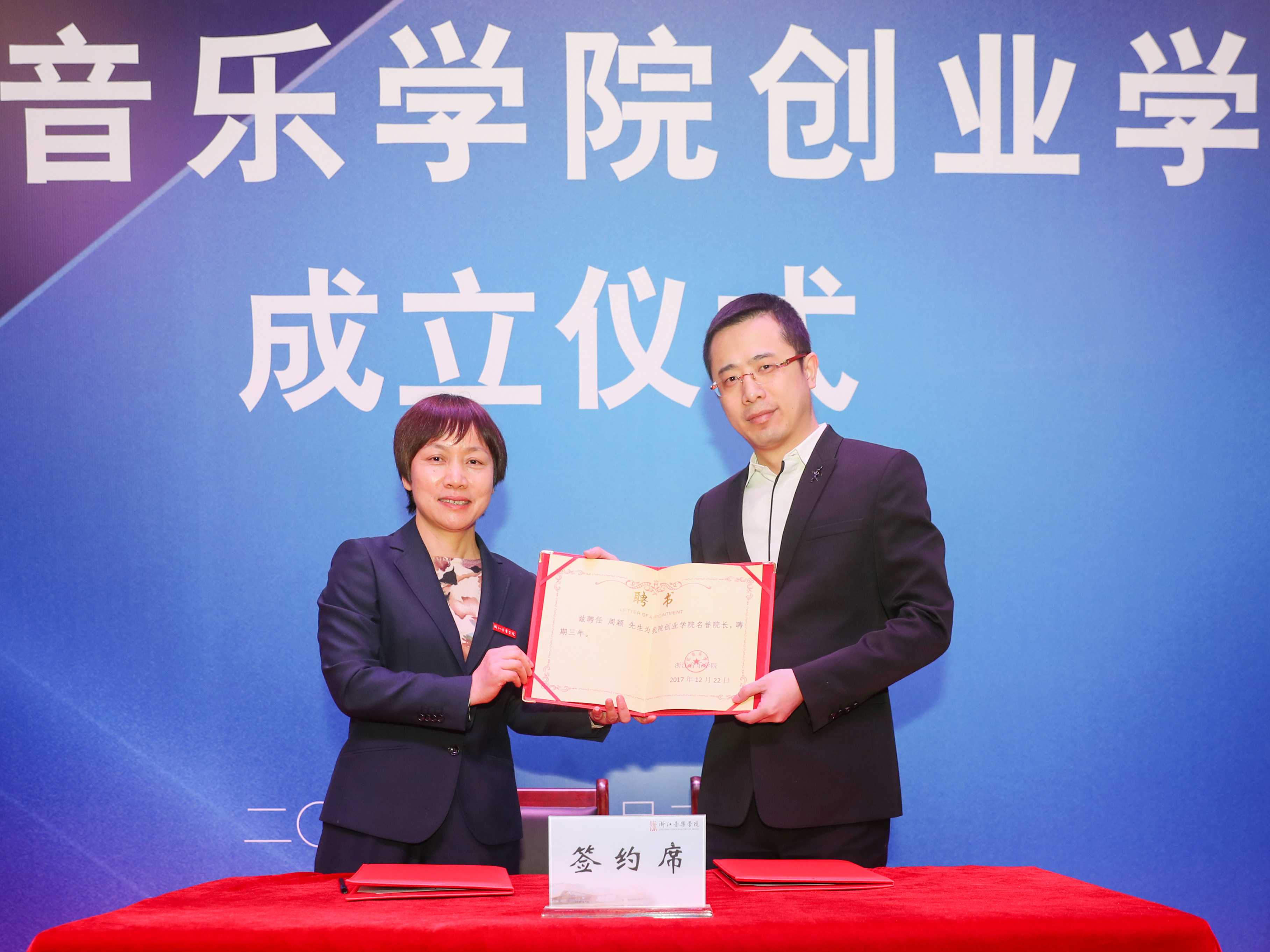 賈秀英代表學(xué)院與周穎簽訂了“浙音聯(lián)合音樂文化產(chǎn)業(yè)基金合作框架協(xié)議”,并聘任周穎為創(chuàng)業(yè)學(xué)院名譽院長。周蘇紅、張鴻雁共同為周穎、郭羽、高藝、陳建彬、黃曉東、南鴻雁、杜竹松、吳滌、豆乃強、王建斌等10位首批創(chuàng)業(yè)導(dǎo)師頒發(fā)聘書。楊九華、丁松泉分別為西湖藝創(chuàng)小鎮(zhèn)、杭州富陽龍門古鎮(zhèn)景區(qū)、好琴聲(上海)網(wǎng)絡(luò)科技有限公司和德清洛舍鋼琴小鎮(zhèn)等4個首批校外創(chuàng)新創(chuàng)業(yè)實踐基地授牌。