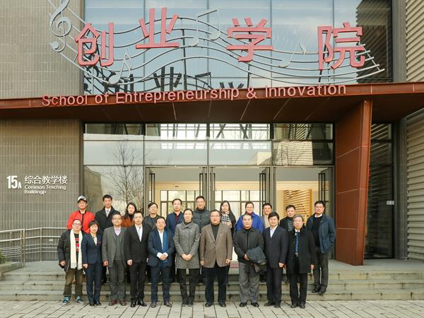 儀式上,省教育廳副廳長朱鑫杰與學(xué)院黨委書記褚子育共同為創(chuàng)業(yè)學(xué)院揭牌。