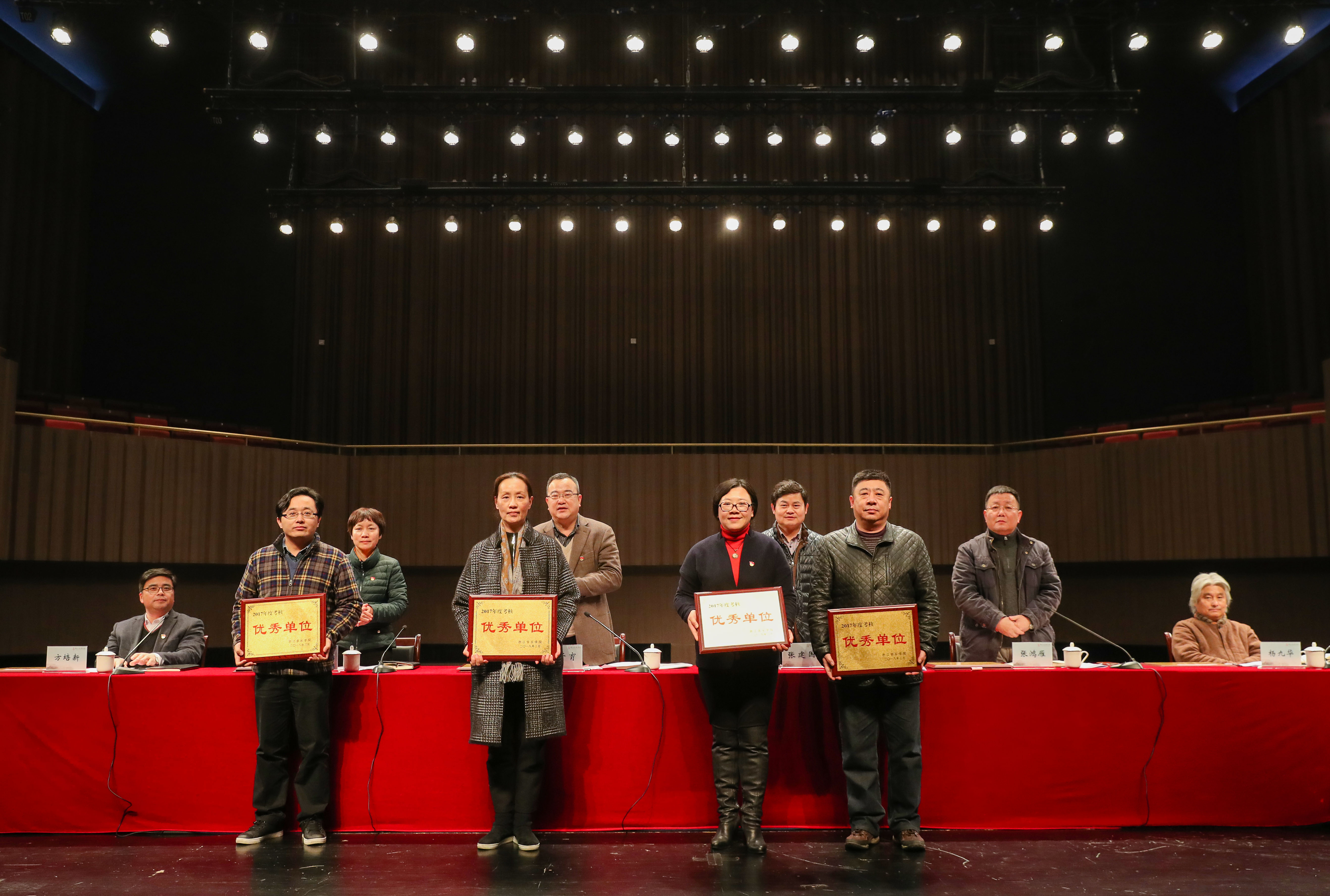會(huì)議表彰了學(xué)院2017年度綜合考核優(yōu)秀單位、2017年度中層黨政領(lǐng)導(dǎo)班子和中層領(lǐng)導(dǎo)考核優(yōu)秀人員、2017年度教職工考核優(yōu)秀等次人員。學(xué)院黨政領(lǐng)導(dǎo)為年度綜合考核優(yōu)秀單位頒發(fā)了獎(jiǎng)牌和榮譽(yù)證書(shū)。