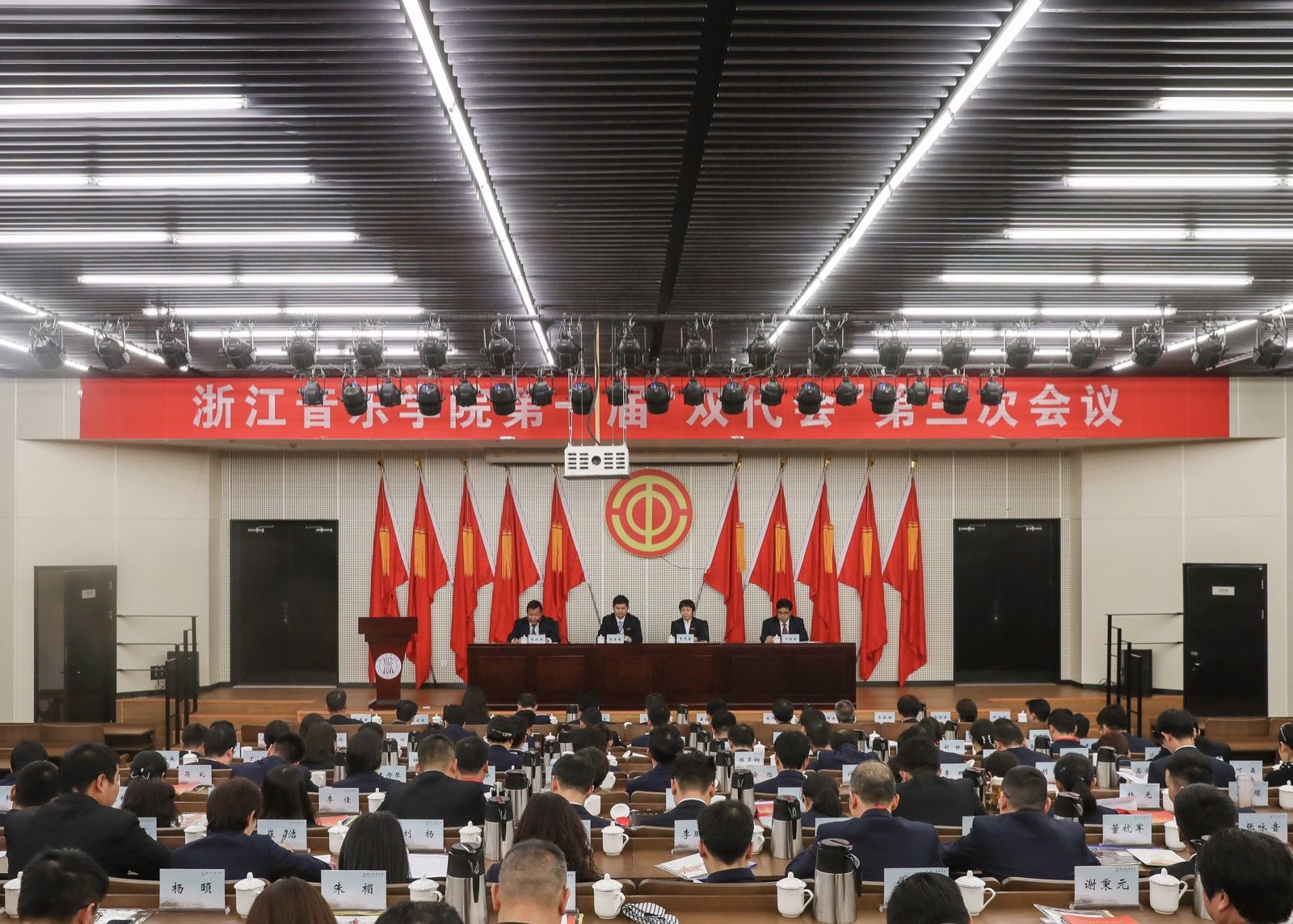 張建國代表學(xué)院向大會作了題為《深化改革促發(fā)展 提高質(zhì)量上水平奮力譜寫“高水平一流”音樂學(xué)院建設(shè)新篇章》的工作報告。他簡要回顧了學(xué)院一年來各項工作所取得的成績,指出中國特色社會主義進入了新時代,給我們的教育事業(yè)和文化事業(yè)發(fā)展提供了前所未有的戰(zhàn)略機遇,浙江的高等教育強省建設(shè)和文化浙江建設(shè)都站在了新的歷史起點。浙音作為浙江省第一所音樂藝術(shù)高等院校,承載著立德樹人和繁榮發(fā)展社會主義文藝的雙重使命,責(zé)任重大,使命光榮。我們一定要圍繞“高水平一流”辦學(xué)目標定位,全面落實立德樹人根本任務(wù),加快推進內(nèi)涵式發(fā)展,努力為中國特色社會主義事業(yè)發(fā)展培養(yǎng)更多高素質(zhì)的音樂藝術(shù)專門人才;同時緊扣文化浙江建設(shè)戰(zhàn)略目標,堅持以人民為中心,主動服務(wù),為社會主義文化事業(yè)發(fā)展和文化浙江建設(shè)貢獻浙音力量。