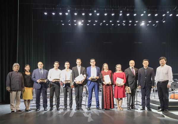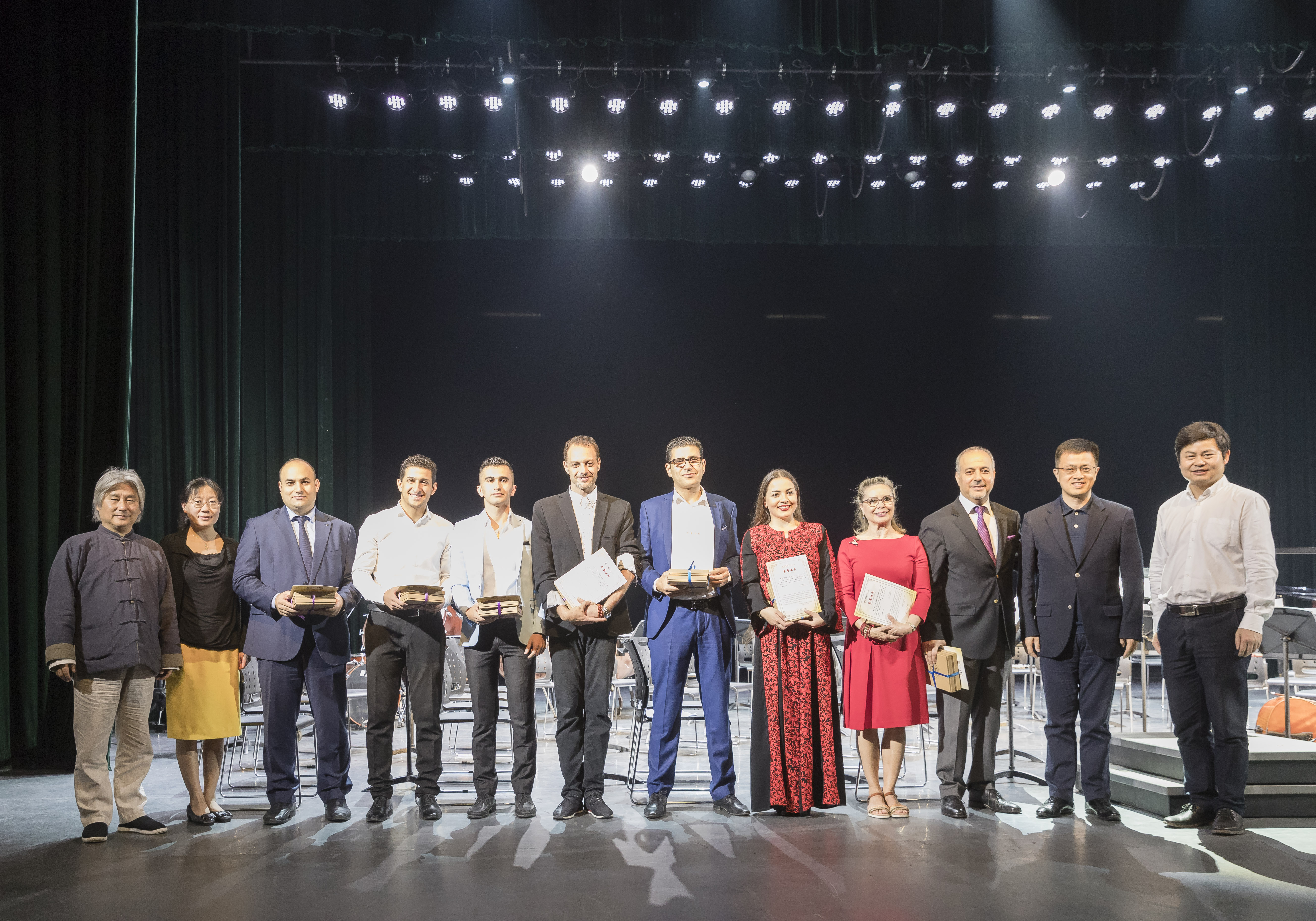 余建代表國家文化和旅游部外聯(lián)局對來自“一帶一路”沿線國家的藝術(shù)大師們表示熱烈歡迎,并對“意會中國”——“一帶一路”藝術(shù)大師工作坊第二次在浙音的順利舉辦表示祝賀。希望浙音傳承“意會中國”的品牌精神,將這樣的活動打造成與“一帶一路”沿線國家民心相通的精品項目,實現(xiàn)不同文化的和諧共處與文明互鑒。隨后,國家文化和旅游部、浙江省文化廳、浙江音樂學(xué)院領(lǐng)導(dǎo)向藝術(shù)家們頒發(fā)了證書和紀(jì)念品,來自約旦的藝術(shù)家將雕刻有“浙江音樂學(xué)院”字樣的具有民族特色的紀(jì)念品回贈給活動承辦方。約旦大學(xué)藝術(shù)與設(shè)計學(xué)院副院長黑薩姆·亞辛代表參會藝術(shù)家發(fā)言,他表示雖然大家各方使用的語言不同,但通過音樂這種充滿創(chuàng)造力、充滿愛、和平、進(jìn)步和美的語言緊緊相連,我們一起分享著快樂和喜悅。