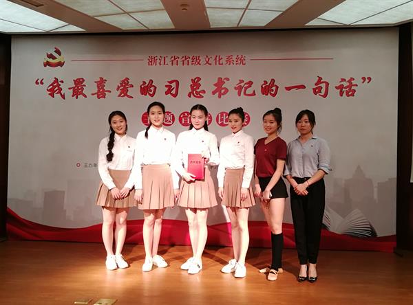 5月16日,省級(jí)文化系統(tǒng)“我最喜愛(ài)的習(xí)總書(shū)記的一句話”黨課主題宣講比賽決賽隆重舉行。我院舞蹈系黨總支選送的《青春是用來(lái)奮斗的》受到現(xiàn)場(chǎng)評(píng)委觀眾一致好評(píng),最終榮獲省級(jí)文化系統(tǒng)“我最喜愛(ài)的習(xí)總書(shū)記的一句話”黨課主題宣講比賽第一名(一等獎(jiǎng))。