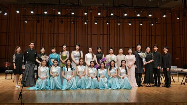 閉幕音樂(lè)會(huì)還邀請(qǐng)了日本山口浩司演繹津輕三味線獨(dú)奏曲《津輕上河原節(jié)》、日本藤高理惠子演奏日本琵琶獨(dú)奏曲《那須與一》。兩位藝術(shù)家高超的演奏技藝,將日本原汁原味的本土音樂(lè)呈現(xiàn)到了舞臺(tái)上,讓師生感受到日本對(duì)歷史音樂(lè)文化保護(hù)與傳承的態(tài)度。此外,作為改良的日本現(xiàn)代音樂(lè)作品代表,由日本毛丫、山口浩司及李英姿帶來(lái)的傳統(tǒng)樂(lè)器與電子音樂(lè)結(jié)合的新作品《老北京胡同》也給我們帶來(lái)耳目一新的另一種視聽(tīng)體驗(yàn)。