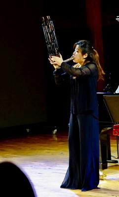 伴隨著揚琴獨奏曲《情思》婉轉(zhuǎn)悠揚的琴音,“跨越中國” (China Crossing)音樂會正式開始?!短K武牧羊》是東北揚琴流派的代表作品之一,著名揚琴演奏家、我院國樂系于海英教授用嫻熟的揉弦、顫竹、滑竹生動表現(xiàn)了該流派的演奏特點。同時也將蘇武出使匈奴,被扣十幾年堅貞不屈的民族氣節(jié)展現(xiàn)給了觀眾。笙是我國古老的傳統(tǒng)吹奏樂器,青年演奏家、我院國樂系申玉晶演奏的《飛鶴驚泉》妙趣橫生,流暢的旋律和復(fù)雜的技巧令人驚嘆。接著,于海英、申玉晶兩位演奏家合作演奏了《阿細歡歌》《太行鄉(xiāng)情》?!栋⒓殮g歌》取材云南民歌,笙特有飽滿的和音與明快的節(jié)奏,以及與揚琴聲部默契的配合,像是把彝族阿細人節(jié)日里載歌載舞的熱鬧場面再現(xiàn)于新西蘭;《太行鄉(xiāng)情》充滿濃郁的陜西民間音樂色彩。上半場結(jié)束前,于海英教授還演奏了青年作曲家、我院作曲與指揮系老師王云飛的新作——揚琴獨奏《山哈》,樂曲描繪了畬族人民勇敢、樂觀、活潑的民族性格,中國少數(shù)民族音樂色彩溢滿了整個音樂廳,現(xiàn)場不時響起陣陣掌聲。
