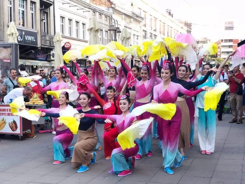 在保加利亞大特爾諾沃,舞蹈團將中國民間舞蹈帶到了一個新的國際展現(xiàn)舞臺。團員們以高漲的熱情參加了“International Folklore Festival ”的游行、演出,并通過舞蹈語匯向世界傳遞中華民族的傳統(tǒng)文化藝術(shù)之美。他們先后奔赴了小鎮(zhèn)多布里奇、圖特拉坎、卡贊勒克等地舉行巡演,并與來自世界各國的青年以舞會友,開展藝術(shù)的碰撞和文化的交流。