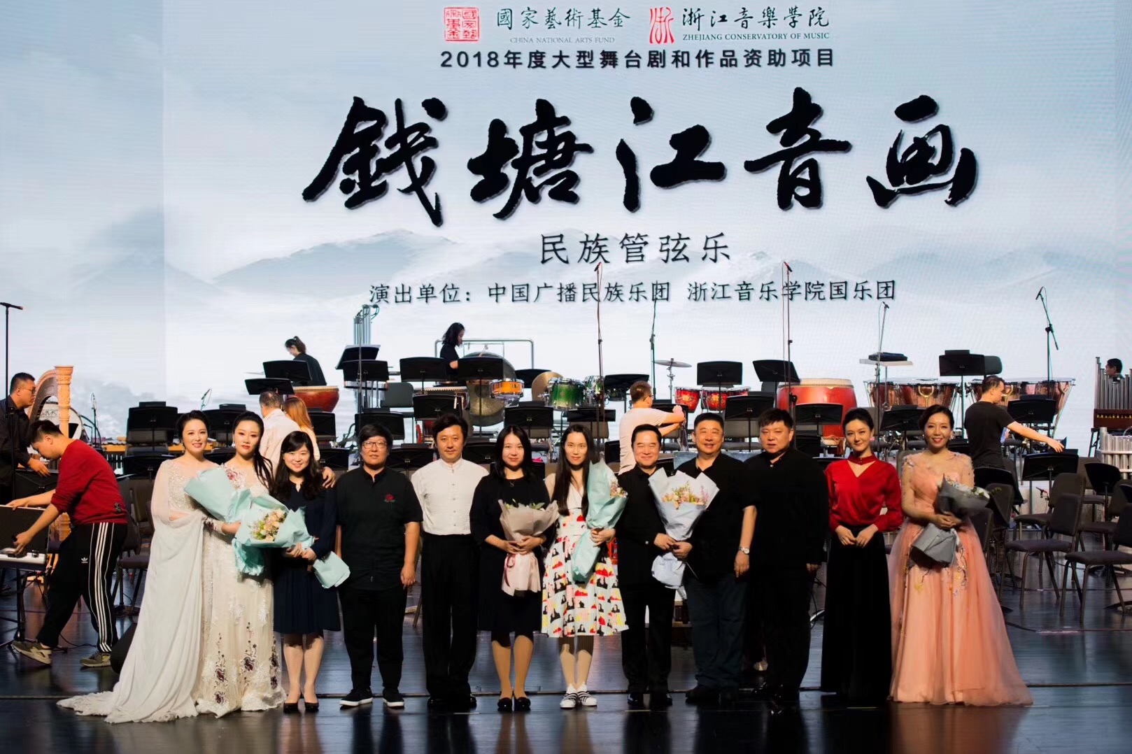 “八月十八潮,壯觀天下無?!?/span>9月27日農(nóng)歷八月十八,國家藝術基金2018年度大型舞臺劇和作品資助項目民族管弦樂組曲《錢塘江音畫》在學院大劇院首演。副省長成岳沖,省文化廳黨組書記、廳長、學院黨委書記褚子育,省政府副秘書長蔡曉春,省文化廳、省建設廳、省水利廳、省商務廳、省旅游局、省文聯(lián)、省廣電集團、省旅游集團等優(yōu)秀傳統(tǒng)文化行動計劃成員單位的領導,學院領導張建國、賈秀英、張鴻雁、楊九華,部分音樂界的專家、學者等共同觀看演出。
