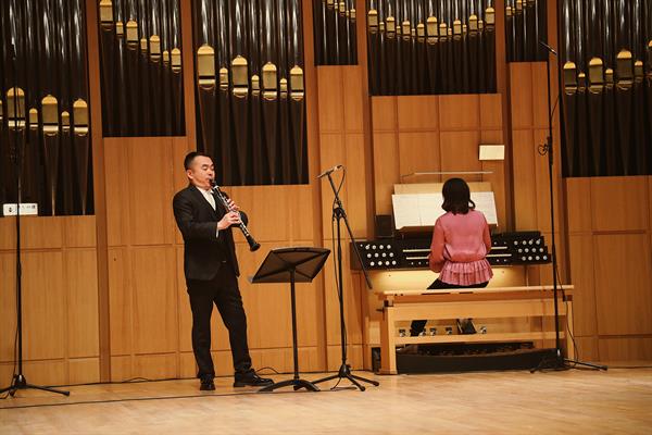 音樂(lè)會(huì)在學(xué)院管弦系單簧管教授董德君和青年管風(fēng)琴演奏家李藝花合奏的作品《來(lái)自中國(guó)的色彩》頗具動(dòng)感、充滿濃郁中國(guó)韻味的音樂(lè)旋律中拉開(kāi)首演序幕。該曲是意大利著名作曲家曼加尼2017年依據(jù)中國(guó)音樂(lè)民族調(diào)式特點(diǎn)創(chuàng)作而成的,深受當(dāng)今國(guó)內(nèi)外演奏家的青睞,此曲多為單簧管與鋼琴合作,這是單簧管與管風(fēng)琴的世界首演。作品旋律婉轉(zhuǎn)流暢,格調(diào)清新雅致,通過(guò)五聲調(diào)式瞬間拉近了西洋樂(lè)器與中國(guó)樂(lè)迷的距離。