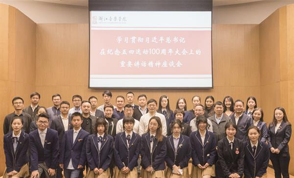 胡建新指出,習(xí)近平總書記在紀(jì)念五四運(yùn)動(dòng)100周年大會(huì)上的重要講話精神是指引新時(shí)代黨的青年工作的綱領(lǐng)性文獻(xiàn),為青年發(fā)展提供了遵循,為青年航程指明了方向,明確了新時(shí)代黨的青年工作的方針、路徑。胡建新強(qiáng)調(diào),學(xué)院廣大團(tuán)員青年一定要學(xué)深悟透習(xí)近平總書記重要講話精神,以愛(ài)國(guó)精神激勵(lì)個(gè)人在革命、建設(shè)、改革的歷程中貢獻(xiàn)青春、智慧和力量,譜寫一曲又一曲的青春壯歌;努力踐行習(xí)近平總書記的殷殷囑托,在人生的“拔節(jié)孕穗期”,以“事必盡善”為遵循,堅(jiān)持技能與人文素養(yǎng)齊頭并進(jìn),擔(dān)當(dāng)時(shí)代責(zé)任、勇于砥礪奮斗、練就過(guò)硬本領(lǐng);不斷錘煉品德修為,在考好學(xué)業(yè)卷的同時(shí)答好人格卷,不斷修身立德,打牢道德根基,以青春之我、奮斗之我,為民族復(fù)興鋪路架橋,為祖國(guó)建設(shè)添磚加瓦,讓青春永遠(yuǎn)在“浙音”的奮進(jìn)中閃光。