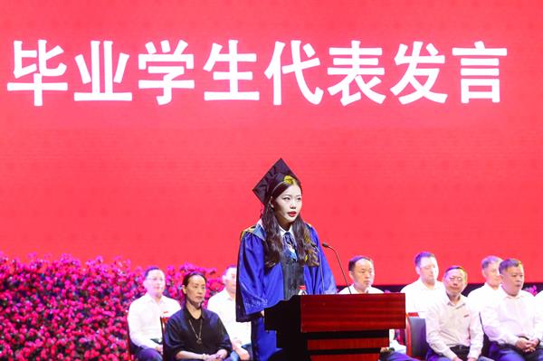 音樂學系研究生張源寧同學、鋼琴系本科生黃逍航同學分別代表研究生、本科生畢業(yè)生發(fā)言,感謝母校悉心栽培。國樂系青年教師劉樂代表全體教師發(fā)言,送上教師滿滿祝福。