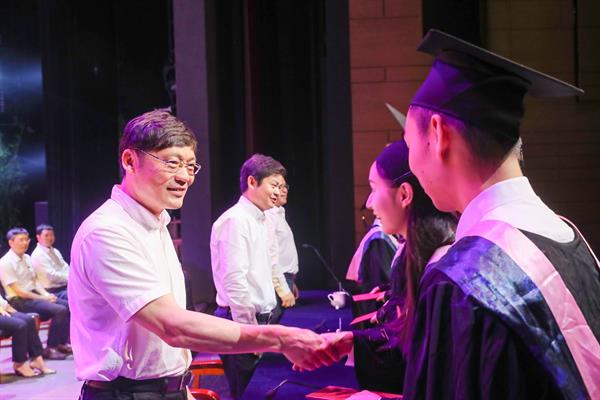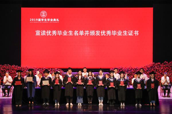 畢業(yè)典禮上,學院副院長楊九華宣讀2019屆浙江省優(yōu)秀畢業(yè)生和院級優(yōu)秀畢業(yè)生名單。與會院領導為優(yōu)秀畢業(yè)生代表頒發(fā)證書。