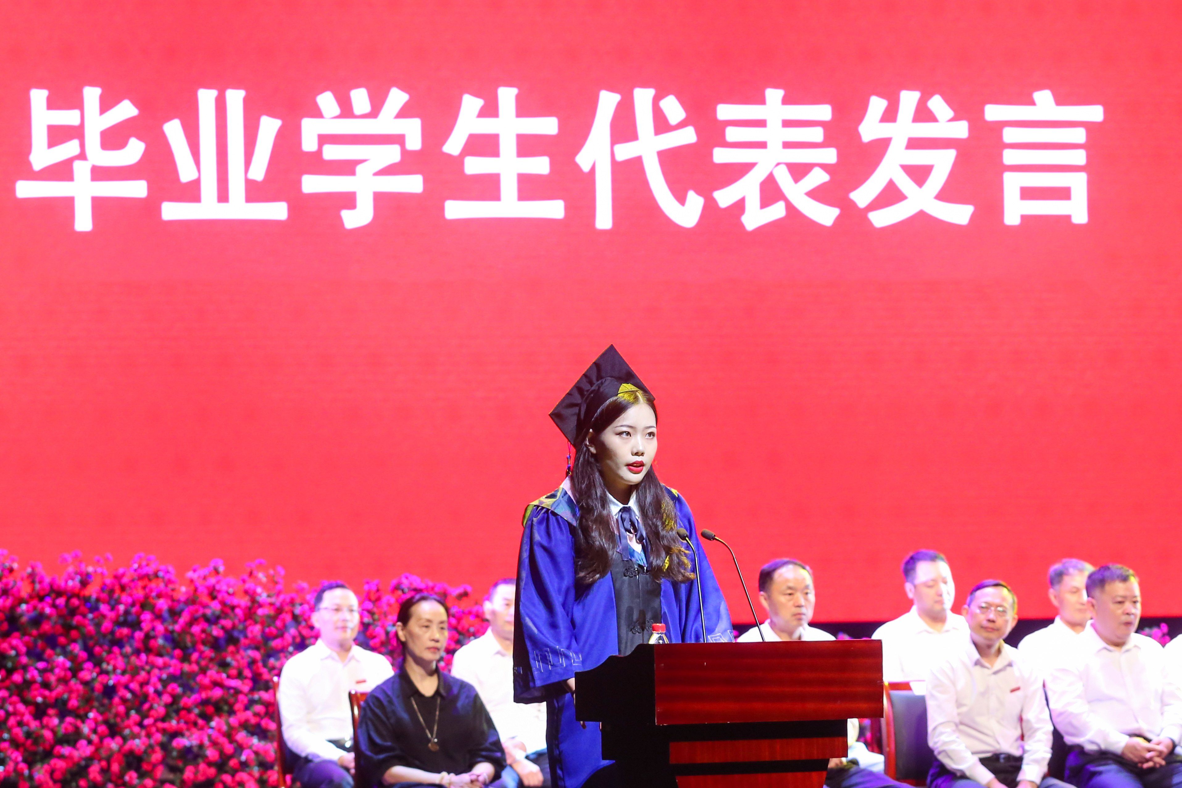學院黨委書記胡建新以“成就最好的自己”為題寄語全體2019屆畢業(yè)生,祝賀大家順利完成學業(yè),走向更廣闊的舞臺,感謝大家為浙音建設發(fā)展作出的貢獻和對母校工作的包容和理解。胡建新指出,2019屆畢業(yè)生是“浙音”最為珍貴的一屆學生,四年來,同學們接受著“浙音”的教育,浸潤著“浙音”的文化,在 “浙音”的這片土地上茁壯成長,是 “浙音”起航的見證者,更是 “浙音”發(fā)展的貢獻者。開啟新的人生航程,希望同學們無論處在人生的什么階段,都要始終堅持做到“事必盡善”、做到終身學習、做到與時代同向同行、做到堅守與執(zhí)著、做到取之有道,成就最好的自己。胡建新強調,“山再高,往上攀,總能登頂;路再長,走下去,定能到達。有信念、有夢想、有奮斗、有奉獻的人生,才是有意義的人生”,愿同學們帶著母校的希望和祝福,繼續(xù)發(fā)揚“事必盡善”的校訓精神,在人生的舞臺上芳華綻放,響應新時代對青年的號召,成就最好的自己,為實現(xiàn)中華民族偉大復興的中國夢而努力奮斗。