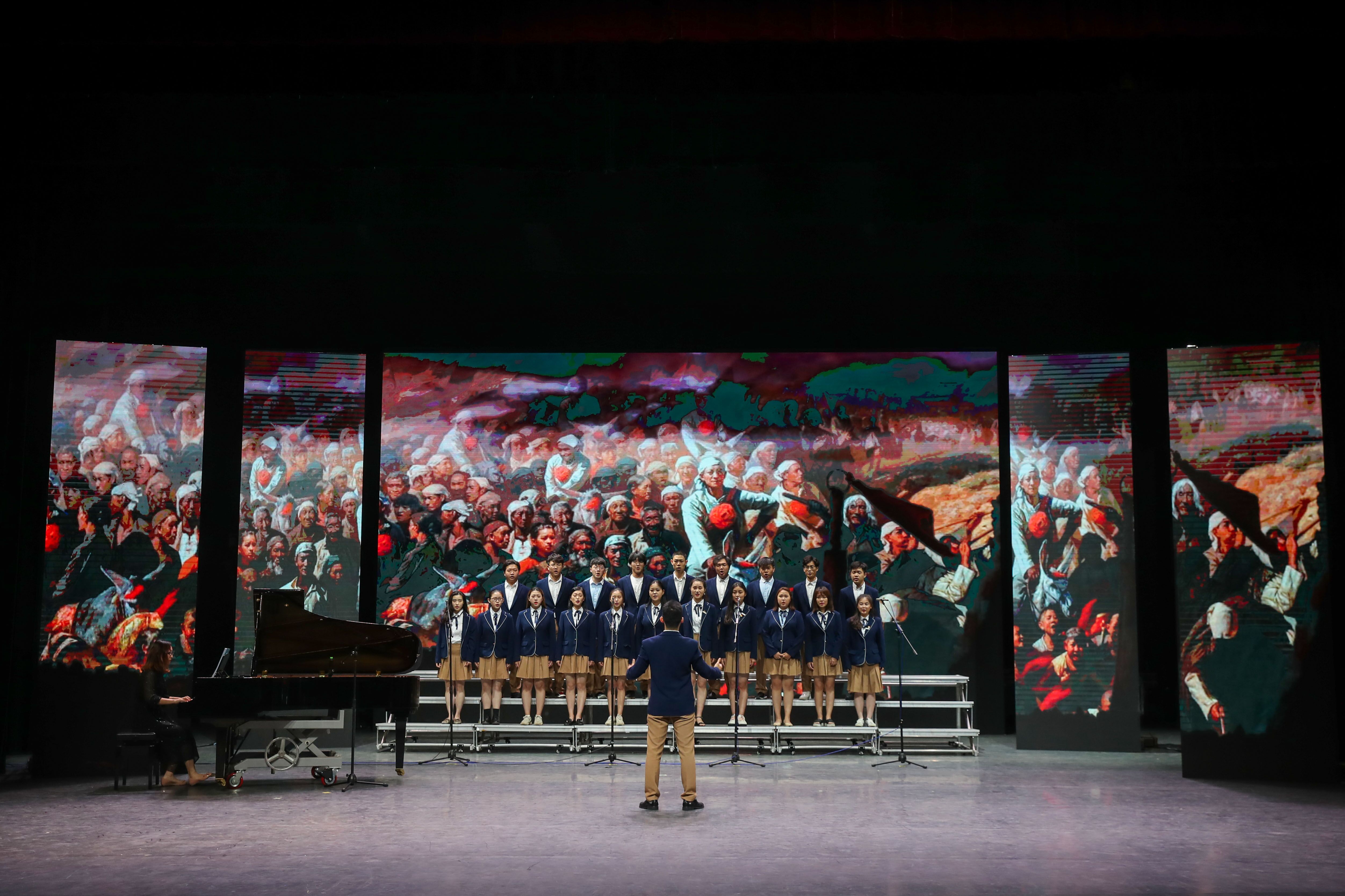 演出在舞蹈《青春心向黨 唱響新時代》中拉開序幕,合唱《在太行山上》、課本劇《松花江上》、音詩畫《絲路》、合唱《喀秋莎》、朗誦合唱《我愛你,中國》等節(jié)目精彩紛呈、感人至深,這些激動澎湃的舞蹈,美妙悅耳的歌聲,引人入勝的課本劇集中展示了這一學期學生在思政課程實踐中的教學成果,體現(xiàn)了思想政治理論課與藝術創(chuàng)作實踐課協(xié)同融合、相互滲透、相互促進的良性循環(huán)和良性互動。展演在唯美動聽、朗朗上口的越劇表演 《百年共筑中國夢》圓滿落幕。
