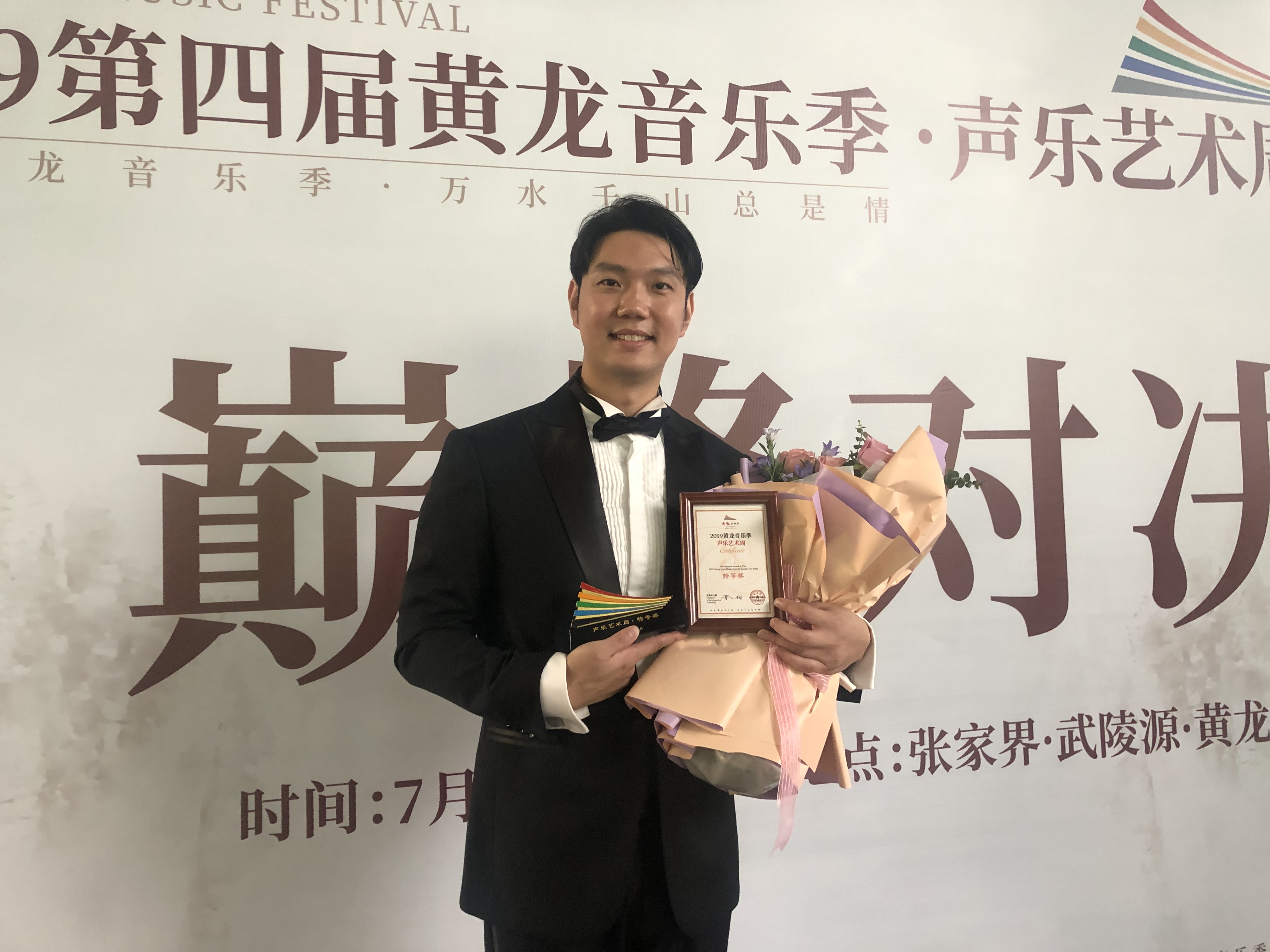 7月30日上午,2019黃龍音樂季·聲樂藝術(shù)周巔峰對決賽暨頒獎(jiǎng)典禮在張家界武陵源黃龍哈利路亞音樂廳舉行?,F(xiàn)場,12位巔峰對決挑戰(zhàn)者在近千人的激烈角逐中脫穎而出,展開王者之戰(zhàn)。我院聲樂歌劇系青年教師劉濤于29日經(jīng)過激烈比拼,榮獲專業(yè)美聲組—教師和專業(yè)院團(tuán)演員組金獎(jiǎng),并獲得了美聲組唯一的巔峰對決名額。最終,在巔峰對決中,劉濤以完美的聲音、強(qiáng)烈的藝術(shù)感染力贏得了評委的高度認(rèn)可(現(xiàn)場投票15票)和現(xiàn)場觀眾的熱烈掌聲,獲得了象征最高榮譽(yù)的2019黃龍音樂季·聲樂藝術(shù)周特等獎(jiǎng)30萬元藝術(shù)發(fā)展資助金。