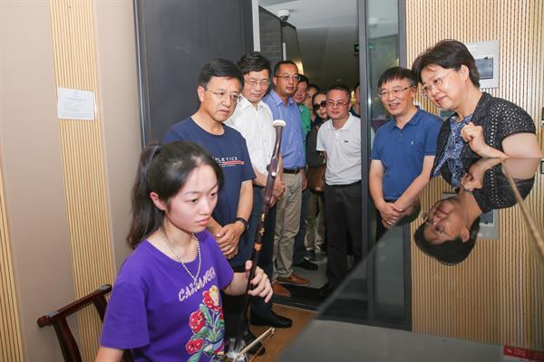 考察行程中,楊培君一行先后參觀了大劇院、黑匣子劇場、現(xiàn)代音樂廳和學生琴房等教學與藝術(shù)實踐場所,并詳細了解了在人才培養(yǎng)、師資隊伍、學科專業(yè)、社會合作等方面取得的成績,以及校園整體規(guī)劃與建設(shè)情況。