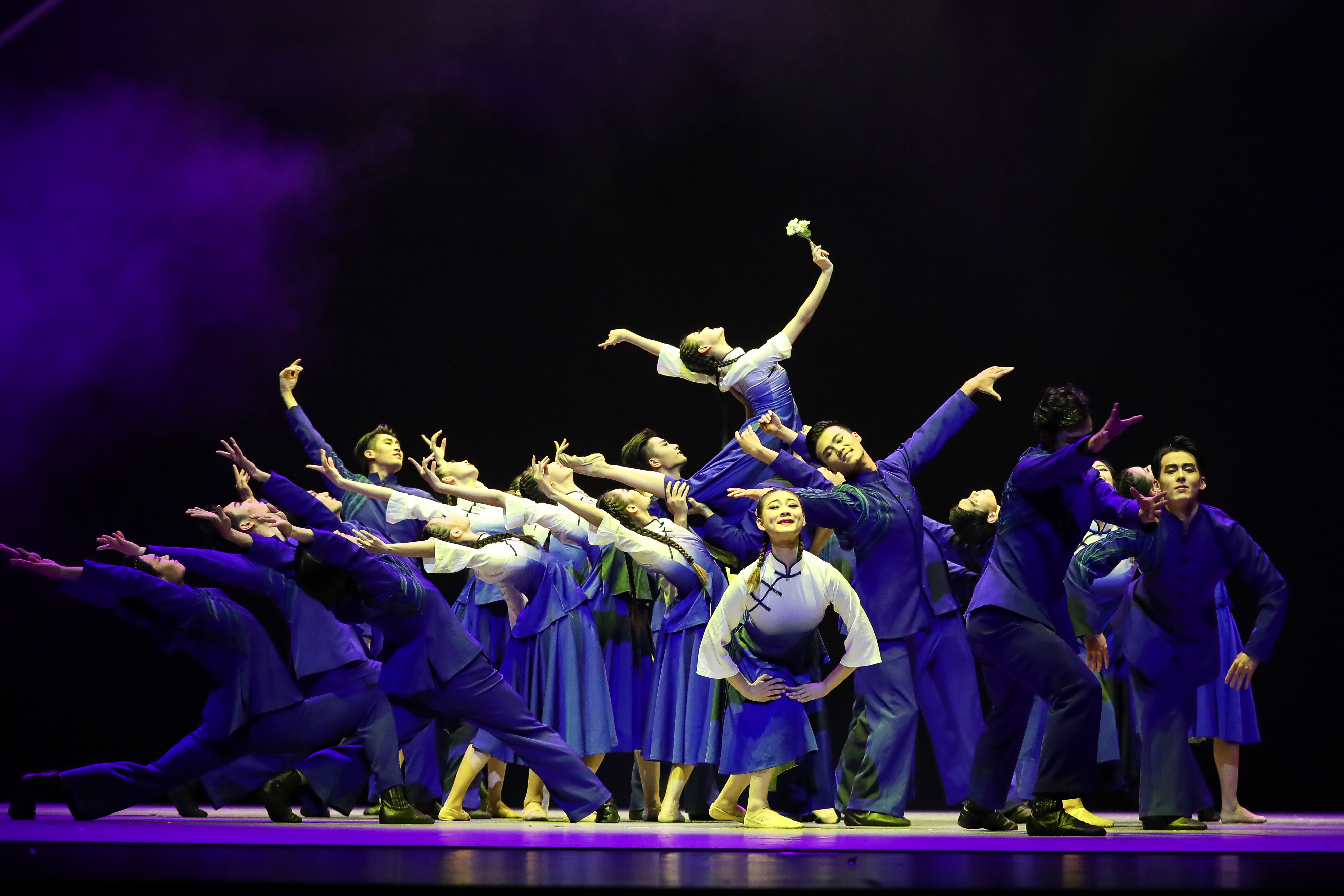盛世桃李聚西湖,彩練當空身形健,青春逐鹿心無悔,當為中華舞蹁躚。綜合匯報演出在浙江音樂學院帶來的《碇步橋水清悠悠》中拉開序幕。在朦朧月色下,表演者舞姿柔美、身材婀娜、動作整齊,深情演繹了那份歲月留下的抹不去的鄉(xiāng)愁,那記憶深處的腳步聲,化為淺淺的清歡,成為碇步橋上的回響。第一篇章集中展演了《唐印》《臺海謠》《葛蓓莉婭》女變奏《唐吉柯德》男變奏《谷雨》,表演者用形象的舞蹈語言直觀展現(xiàn)了舞種的風格特點和角色的情感塑造,展現(xiàn)出師生們對舞蹈藝術(shù)的傳承與創(chuàng)新。