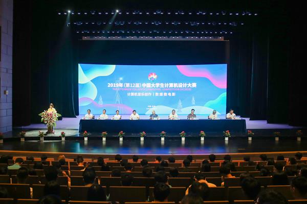 8月24日上午,由教育部高等學(xué)校大學(xué)計(jì)算機(jī)課程教學(xué)指導(dǎo)委員會(huì)、中國(guó)大學(xué)生計(jì)算機(jī)設(shè)計(jì)大賽組織委員會(huì)聯(lián)合主辦,我院承辦的2019年(第12屆)中國(guó)大學(xué)生計(jì)算機(jī)設(shè)計(jì)大賽計(jì)算機(jī)音樂創(chuàng)作類與數(shù)媒微電影類決賽開幕式在學(xué)院大劇院隆重舉行,教育部原副部長(zhǎng)、中國(guó)大學(xué)生計(jì)算機(jī)設(shè)計(jì)大賽組委會(huì)名譽(yù)主任周遠(yuǎn)清,浙江省文化和旅游廳黨組書記、廳長(zhǎng)、大賽組委會(huì)副主任褚子育,中國(guó)人民大學(xué)校長(zhǎng)助理、大賽組委會(huì)副主任、秘書長(zhǎng)杜小勇,大賽組委會(huì)秘書長(zhǎng)、顧問盧湘鴻,星海音樂學(xué)院副院長(zhǎng) 、大賽評(píng)委陶陌,四川音樂學(xué)院副院長(zhǎng)、大賽評(píng)委文鋒,我院黨委書記胡建新、副院長(zhǎng)楊九華,以及來自全國(guó)246所高校的1700余名師生參加。開幕式由大賽組委會(huì)評(píng)比委員會(huì)副秘書長(zhǎng)鄧習(xí)峰主持。