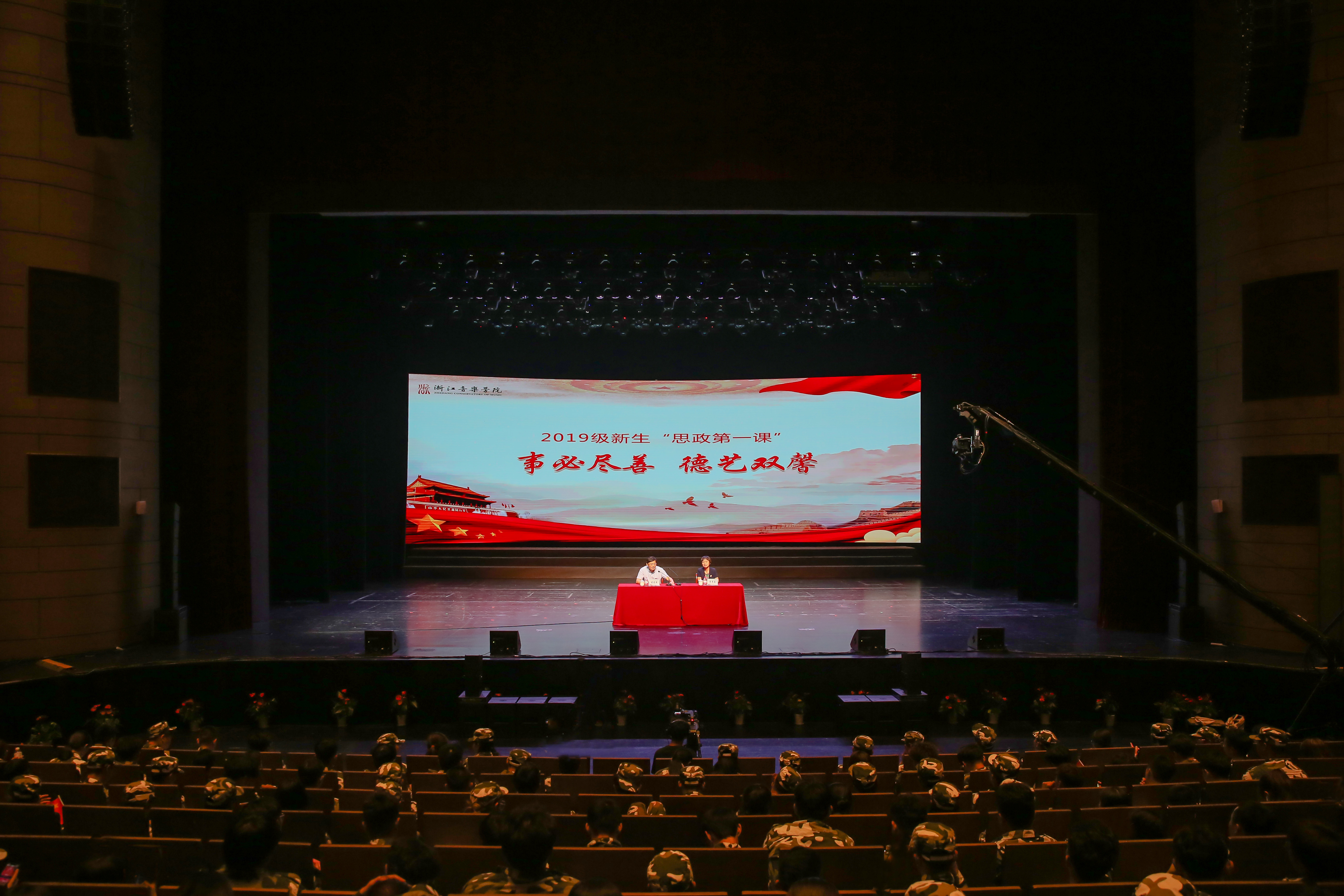 9月20日晚,2019級(jí)新生“思政第一課”在學(xué)院大劇院隆重舉行,學(xué)院黨委書記胡建新以“事必盡善 德藝雙馨”為題,為750名新生講授了一堂內(nèi)容豐富、生動(dòng)活潑、思想深刻、意義深遠(yuǎn)的“思政第一課”。學(xué)院黨委副書記賈秀英主持。