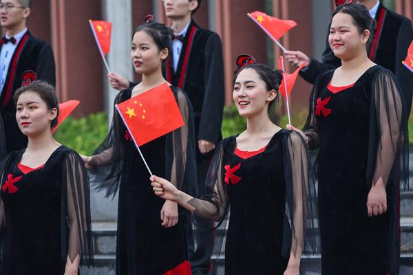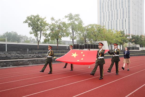 上午8時,師生們冒雨在操場隆重舉行升旗儀式。國旗護衛(wèi)隊隊員們邁著整齊劃一的步伐,將國旗護送至升旗臺,師生員工肅立注目。在莊嚴的國歌聲中,鮮艷的五星紅旗冉冉升起,大家滿懷崇敬之情向國旗行注目禮,送上對祖國最美好的祝福。升旗儀式結束后,還舉行了“祝福祖國”校園快閃,大家揮舞手中的國旗,以歌言志,以藝抒情,表達對偉大祖國最深情的熱愛。