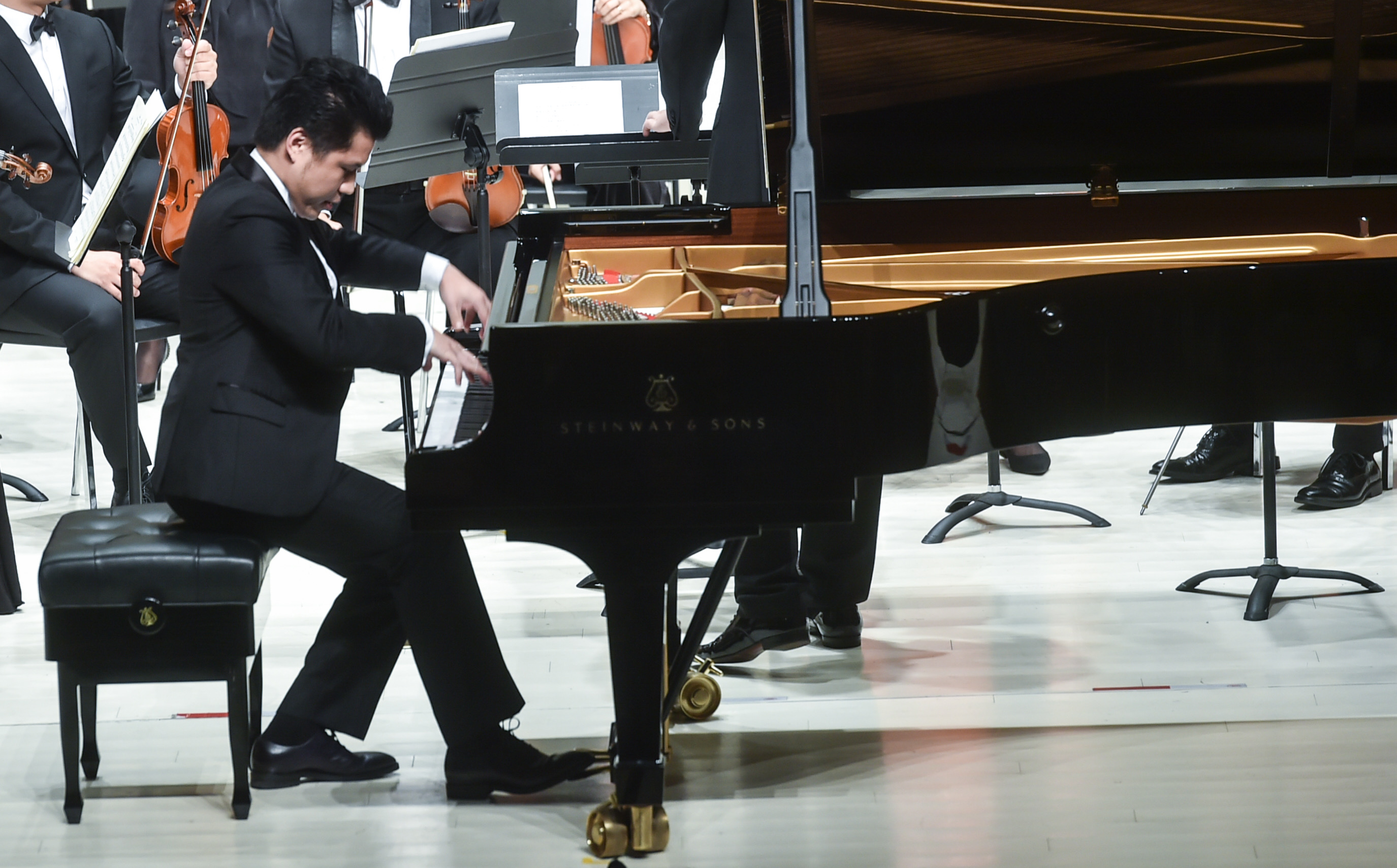 開(kāi)幕式上,中國(guó)文學(xué)藝術(shù)界聯(lián)合會(huì)黨組成員、書(shū)記處書(shū)記李前光和成都市市長(zhǎng)羅強(qiáng)先后致辭。著名指揮家余隆、楊洋、洪音等,著名歌唱家廖昌永、閻維文、殷秀梅、呂繼宏、張也、雷佳,著名演奏家宋飛、呂思清等國(guó)內(nèi)頂尖藝術(shù)家依次登臺(tái)亮相,助力“金鐘”盛會(huì)。我院鋼琴系青年教師、第七屆中國(guó)音樂(lè)金鐘獎(jiǎng)鋼琴比賽金獎(jiǎng)獲得者朱昊參加了金鐘之星管弦樂(lè)專場(chǎng)音樂(lè)會(huì),并與杭州愛(ài)樂(lè)樂(lè)團(tuán)攜手合作演奏了柴可夫斯基的《第一鋼琴協(xié)奏曲》,精湛的技藝贏得觀眾熱烈掌聲,獲得一致好評(píng)。