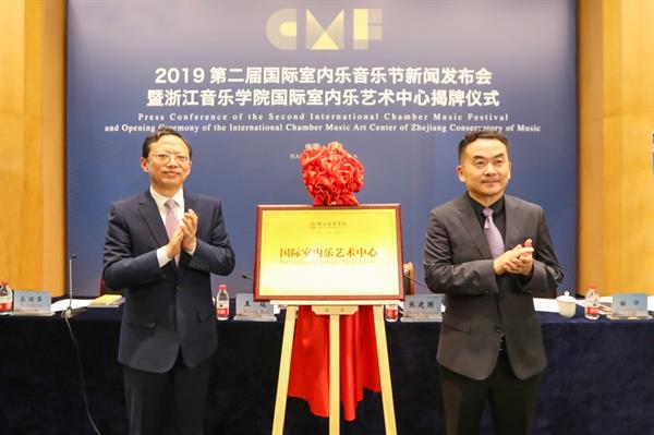 新聞發(fā)布會上,王瑞為學(xué)院國際室內(nèi)樂藝術(shù)中心揭牌。