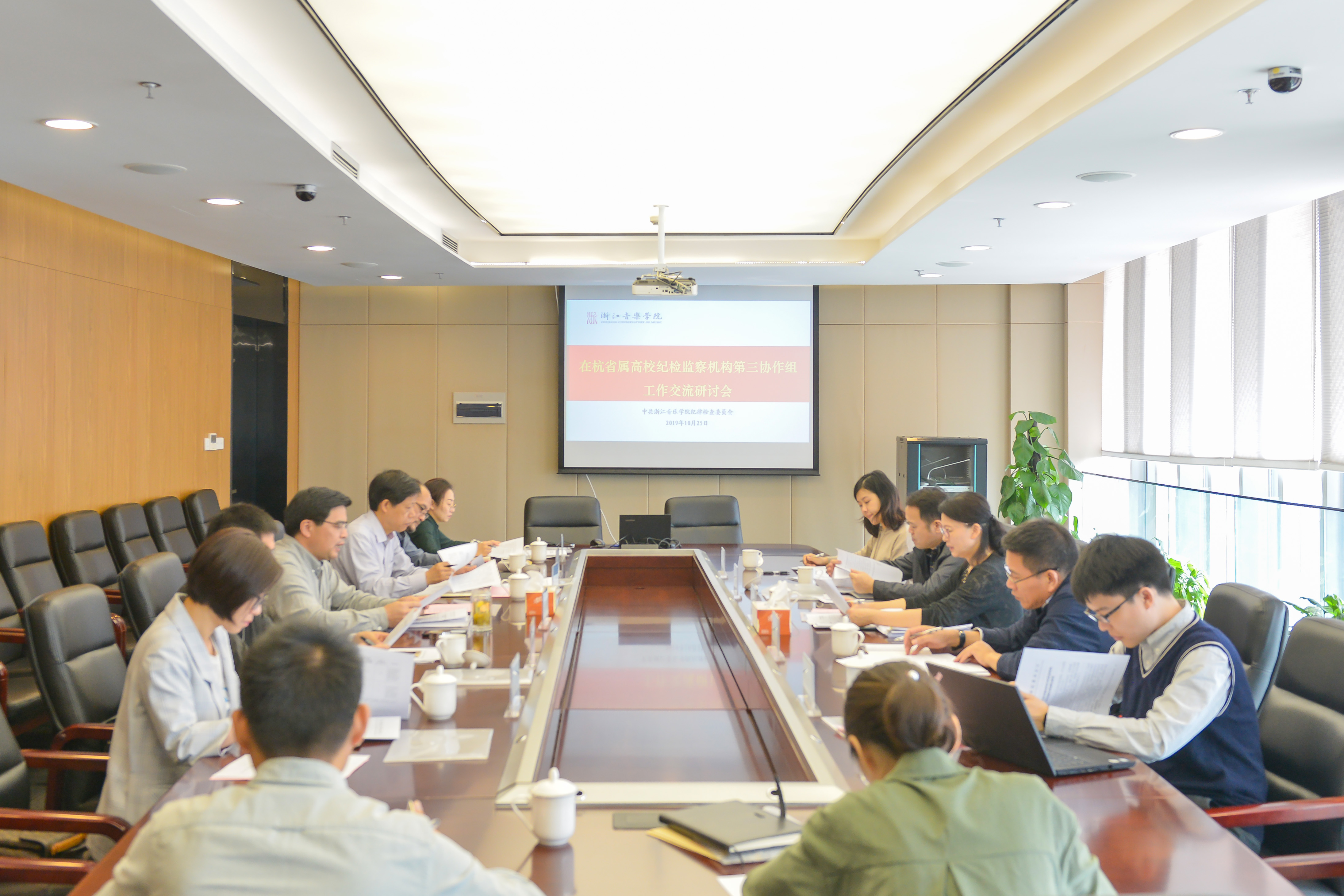 10月25日上午,在杭省屬高校紀(jì)檢監(jiān)察機(jī)構(gòu)第三協(xié)作組第一次交流研討活動(dòng)在我院舉行。省紀(jì)委省監(jiān)委第一紀(jì)檢監(jiān)察室主任袁媛、駐省委宣傳部紀(jì)檢監(jiān)察組副組長(zhǎng)鄭龍一行到會(huì)指導(dǎo),浙江藝術(shù)職業(yè)學(xué)院、浙江旅游職業(yè)學(xué)院紀(jì)委書記、紀(jì)委副書記等參加會(huì)議。會(huì)議由學(xué)院紀(jì)委書記、監(jiān)察專員、第三協(xié)作組召集人方培新主持。