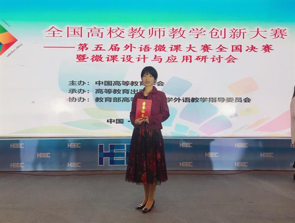 本次全國(guó)總決賽賽制與往年不同,在微課評(píng)選的基礎(chǔ)上,增加了教師現(xiàn)場(chǎng)說(shuō)課環(huán)節(jié)。作為本次全國(guó)比賽唯一一位來(lái)自藝術(shù)院校的英語(yǔ)教師,陸超逸結(jié)合學(xué)生專業(yè)特色,以巧妙的微課設(shè)計(jì)、創(chuàng)新的教學(xué)理念、頗具感染力的表述形式和流暢地道的口語(yǔ)表達(dá),獲得評(píng)委好評(píng)并取得了優(yōu)異的成績(jī)。