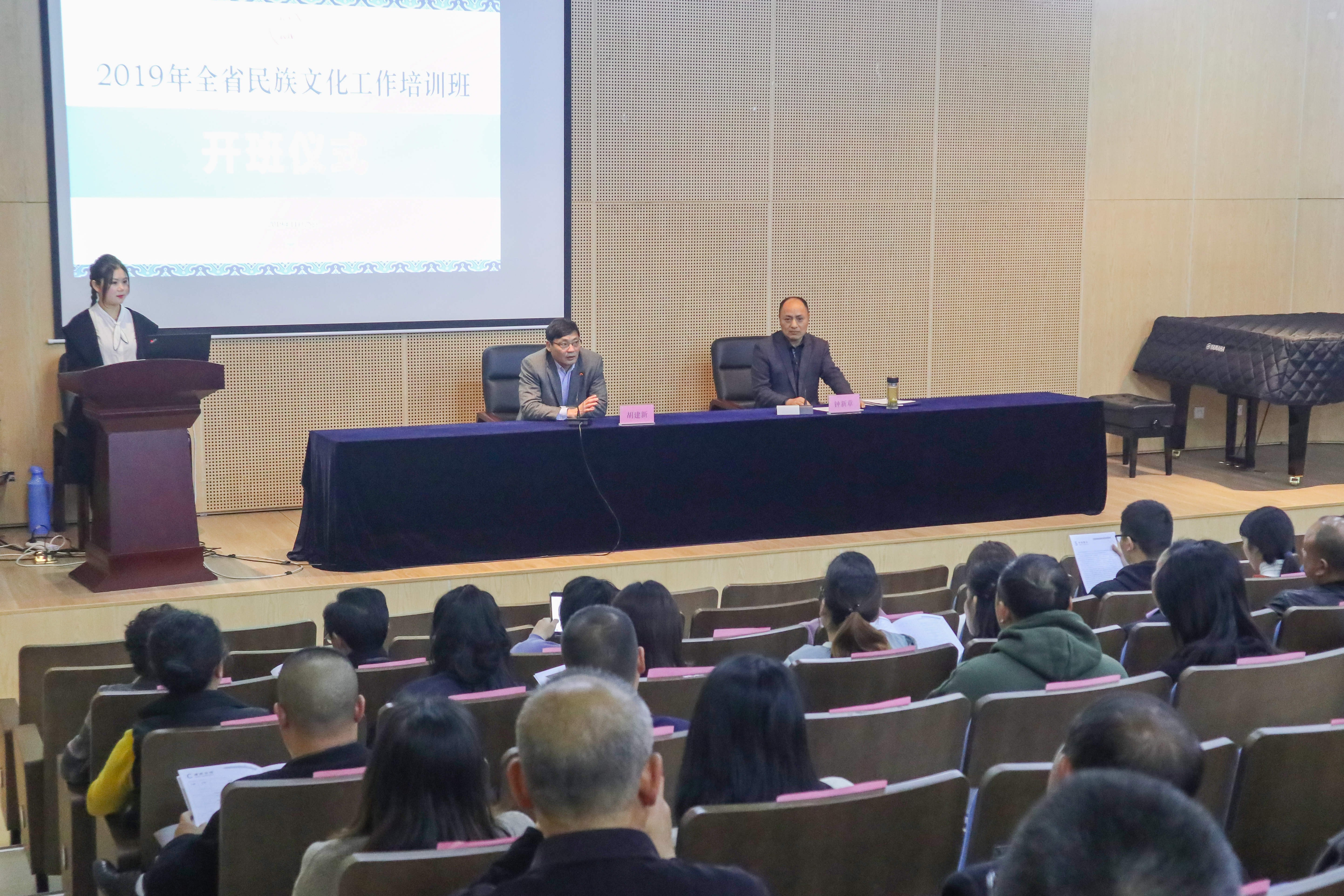11月25日,受浙江省民族宗教事務(wù)委員會(huì)委托,2019年全省民族文化工作培訓(xùn)班在我院順利開(kāi)班。浙江省民族宗教事務(wù)委員會(huì)副主任鐘新章、學(xué)院黨委書(shū)記胡建新出席開(kāi)班儀式并致辭。來(lái)自杭州、溫州、湖州、金華、衢州、麗水各地民宗局、民族鄉(xiāng)(鎮(zhèn))及民族村負(fù)責(zé)民族文化活動(dòng)相關(guān)工作的88名學(xué)員參加此次培訓(xùn)。
