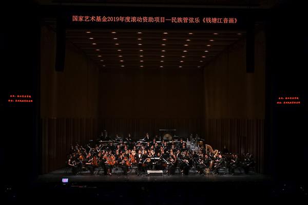 民族管弦樂《錢塘江音畫》于2018年獲批國家藝術基金大型舞臺劇和作品資助項目,此后分別由中國廣播民族樂團、浙江歌舞劇院民族樂團在北京音樂廳、中山音樂堂、杭州大劇院及浙江五地共巡演八場,取得了良好的業(yè)內評價與社會影響,并于2018年末順利完成結項。2019年,《錢塘江音畫》在眾多2018年度大型項目中脫穎而出,獲批2019年度國家藝術基金大型舞臺劇和作品滾動資助項目。該項目是浙江省唯一一部獲得滾動資助的大型民族管弦樂,也是滾動資助開設以來浙江省被選中的第二部大型舞臺項目,填補了浙江省大型音樂作品在國家藝術基金滾動項目中的空白。