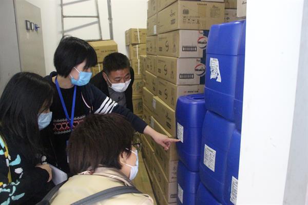 現(xiàn)場,學(xué)院副院長張偉波向指導(dǎo)組介紹了我院嚴(yán)格按照黨中央、國務(wù)院及省委省政府要求認(rèn)真開展疫情防控工作的基本情況,就校園防控工作與指導(dǎo)組進(jìn)行交流探討,并聽取意見建議。防控辦辦公室主任匯報了學(xué)院復(fù)學(xué)復(fù)工準(zhǔn)備工作的具體舉措和防控工作“兩案九制”的相關(guān)內(nèi)容。指導(dǎo)組一行對進(jìn)出口防疫關(guān)卡、防疫隔離點、食堂、宿舍、教室、醫(yī)務(wù)室等重點區(qū)域進(jìn)行巡查,對防疫物資倉庫、防疫口罩、消毒液等物資的使用進(jìn)行查驗。