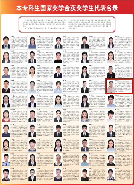 據(jù)悉,該名錄從全國(guó)6萬(wàn)名榮獲2019年國(guó)家獎(jiǎng)學(xué)金的優(yōu)秀本??茖W(xué)生中選拔出110名優(yōu)秀代表展示他們的風(fēng)采,旨在激勵(lì)廣大青年學(xué)生樹(shù)立遠(yuǎn)大理想,胸懷愛(ài)國(guó)之情,擔(dān)負(fù)時(shí)代使命,努力掌握科學(xué)知識(shí),錘煉過(guò)硬本領(lǐng),以真才實(shí)學(xué)服務(wù)人民,以創(chuàng)新創(chuàng)造貢獻(xiàn)國(guó)家,在實(shí)現(xiàn)中華民族偉大復(fù)興中國(guó)夢(mèng)的奮斗中書(shū)寫(xiě)青春華章。
