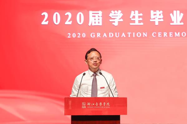 學(xué)院院長(zhǎng)王瑞為全體畢業(yè)生獻(xiàn)上深情寄語“做有理想有情懷有擔(dān)當(dāng)?shù)恼阋羧恕?。他指出?span style="font-family:Calibri">2020年是不平凡的一年。短短數(shù)月,見證了中國(guó)人民抗擊新冠疫情所展現(xiàn)出的偉大民族精神和史詩般的悲壯與激越,見證了中國(guó)在突發(fā)性公共衛(wèi)生危機(jī)面前的中國(guó)自信和中國(guó)力量。歷史是最好的教科書。面對(duì)疫情,中國(guó)速度、中國(guó)效率、中國(guó)精神和中國(guó)力量,成為中華民族偉大精神和社會(huì)主義制度優(yōu)越性的鮮明寫照。在疫情肆虐的日子里,浙音師生創(chuàng)作了歌曲、民族室內(nèi)樂、配樂詩朗誦等25首(部)各種體裁的藝術(shù)作品,產(chǎn)生了廣泛、積極的社會(huì)影響,展現(xiàn)了浙音人應(yīng)有的責(zé)任擔(dān)當(dāng)。他強(qiáng)調(diào),文藝是時(shí)代前進(jìn)的號(hào)角,是鑄造靈魂的工程,文藝工作者是靈魂的工程師,如何在危機(jī)中不迷失方向,在變局中開拓新局,是每一位藝術(shù)工作者需要深入思考的命題??茖W(xué)與藝術(shù)是不可分割的,二者對(duì)人類文明發(fā)展具有不可或缺的價(jià)值。越是艱難困苦,越是需要并且能夠彰顯藝術(shù)的無可替代的價(jià)值和強(qiáng)大的精神力量。中華民族偉大復(fù)興,既需要強(qiáng)大的經(jīng)濟(jì)基礎(chǔ),還必須實(shí)現(xiàn)精神自立、文化自強(qiáng)、理論自覺和思想解放。希望同學(xué)們始終保持獨(dú)立思考和辯證思維,堅(jiān)守“為人民而歌”的藝術(shù)初心,堅(jiān)定藝術(shù)自信,保持藝術(shù)的純真純粹,樹立藝術(shù)工作者的榮譽(yù)感、使命感和責(zé)任感,自尊、自強(qiáng),自省、自愛,努力肩負(fù)起人類發(fā)展和民族振興的歷史重任。面對(duì)新時(shí)代,進(jìn)一步堅(jiān)定理想信念,堅(jiān)持“四個(gè)自信”,秉持“事必盡善”校訓(xùn)精神,把自己的人生理想融入到中華民族復(fù)興的偉大事業(yè)中,在艱苦奮斗中砥礪意志、增長(zhǎng)才干,在祖國(guó)和人民最需要的地方綻放青春光彩。