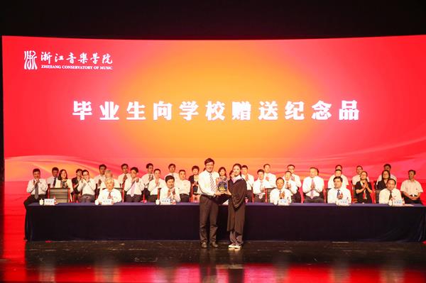 學(xué)院黨委書記胡建新代表學(xué)?,F(xiàn)場(chǎng)接受了畢業(yè)生贈(zèng)送給母校的紀(jì)念品,一張?zhí)貏e的CD光盤匯集了同學(xué)們?cè)谛W(xué)習(xí)期間創(chuàng)作的作品。畢業(yè)生代表上臺(tái)接受了學(xué)院為畢業(yè)生精心設(shè)計(jì)、定制的“事必盡善”紀(jì)念章,小小水晶章飽含母校情、師生誼,寄托母校對(duì)畢業(yè)生的衷心祝愿和殷切希望。