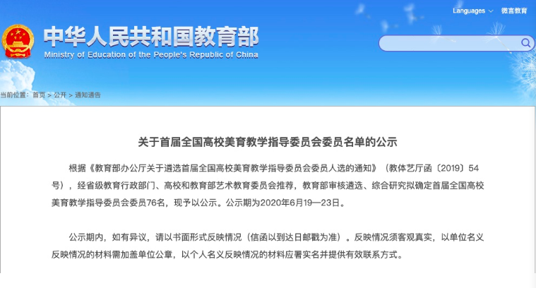 據(jù)了解,為深化高校美育教學(xué)改革,充分發(fā)揮專(zhuān)家對(duì)高校美育教學(xué)工作的研究、咨詢(xún)、評(píng)估和指導(dǎo)等作用,教育部于2019年11月下發(fā)《教育部關(guān)于遴選首屆全國(guó)高校美育教學(xué)指導(dǎo)委員會(huì)委員人選的通知》,決定組建全國(guó)高校美育教學(xué)指導(dǎo)委員會(huì)。美育教指委是在教育部領(lǐng)導(dǎo)下,對(duì)面向全體大學(xué)生的普及藝術(shù)教育教學(xué)發(fā)揮研究、咨詢(xún)、指導(dǎo)、評(píng)估、服務(wù)等作用的專(zhuān)家組織,具有非常設(shè)學(xué)術(shù)機(jī)構(gòu)的性質(zhì),主要職責(zé)為研究高校美育教育教學(xué)規(guī)律,開(kāi)展高校美育課程和教學(xué)理論與實(shí)踐研究;就高校美育的課程建設(shè)、教材建設(shè)、教學(xué)改革等工作向教育部提出咨詢(xún)意見(jiàn)和建議;組織高校美育教師培訓(xùn)、學(xué)術(shù)研討、信息交流和國(guó)際交流;承擔(dān)高校美育教學(xué)質(zhì)量標(biāo)準(zhǔn)的制訂及有關(guān)評(píng)估工作;開(kāi)展高校美育教學(xué)成果鑒定和教學(xué)督導(dǎo)檢查等工作,以及承擔(dān)教育部委托的其他任務(wù)。各?。▍^(qū)、市)根據(jù)本地高校數(shù)推薦省內(nèi)人選,100所以上的省份可推薦3人,50至100所的省份可推薦2人,50所以下的省份推薦1人,人選為高等學(xué)校、政府部門(mén)或行業(yè)、科研院所等單位的專(zhuān)家。部屬各高等學(xué)校和部省合建各高等學(xué)校每校直接向教育部推薦1名本校人選。