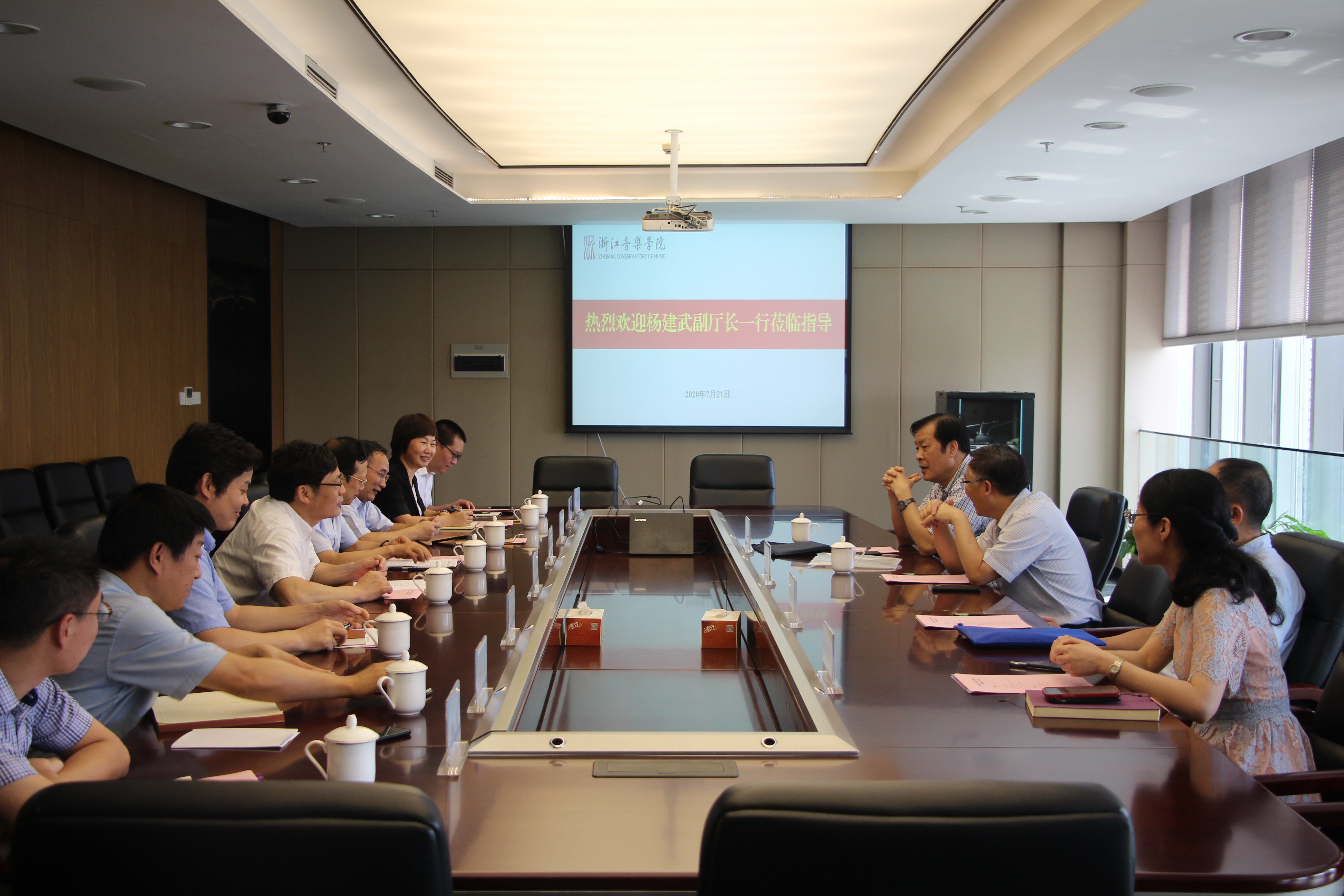7月21日上午,省文化和旅游廳黨組成員、副廳長(zhǎng)楊建武一行4人來院調(diào)研。學(xué)院領(lǐng)導(dǎo)胡建新、王瑞、張建國(guó)、張偉波,辦公室、審計(jì)處、財(cái)務(wù)處、后勤與校園安全處等相關(guān)部門負(fù)責(zé)人陪同調(diào)研。